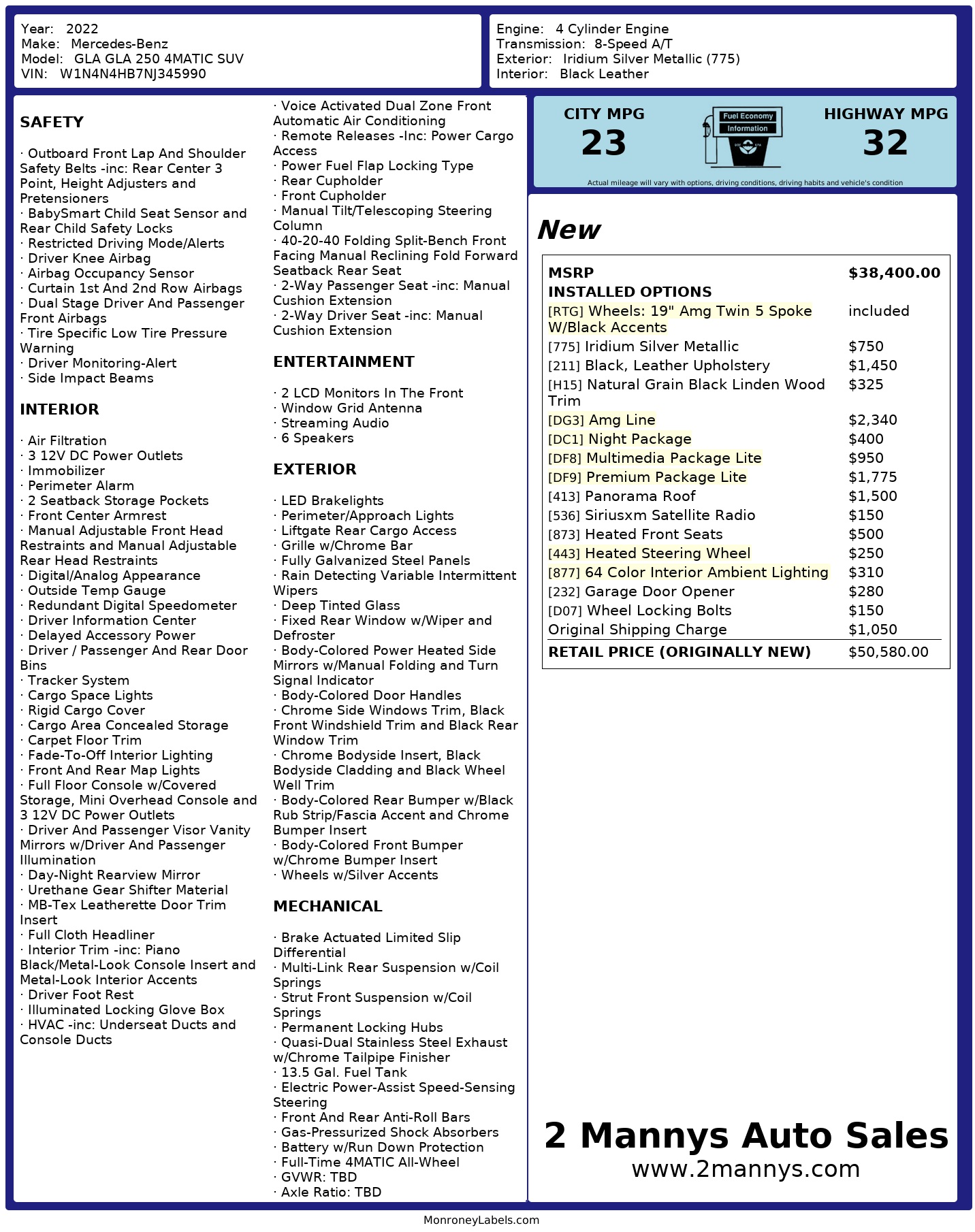 2022 Mercedes Benz Gla Gla 250 4 Matic Suv