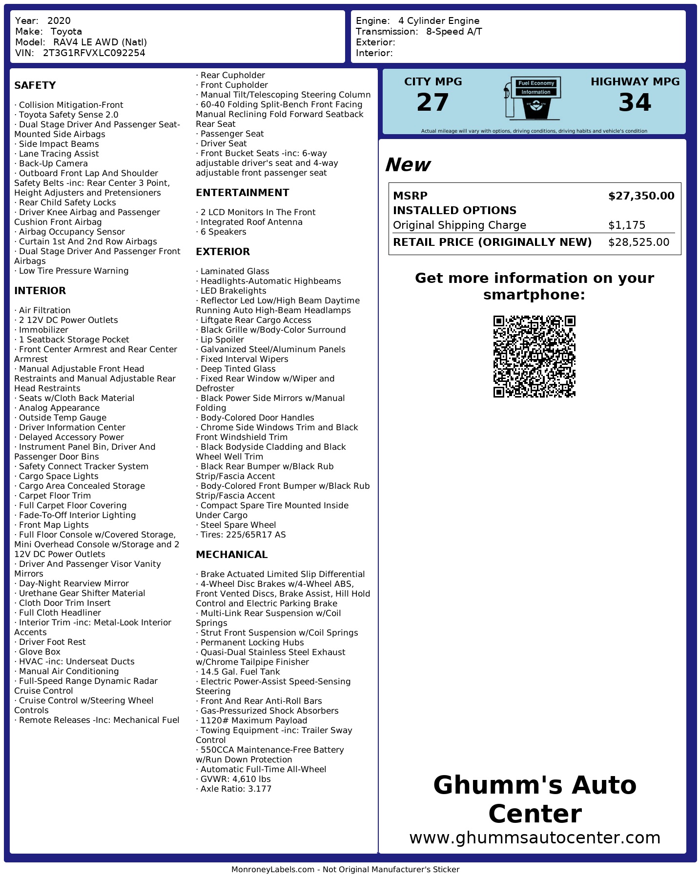 2020 Toyota Rav4 Le Awd (Natl)