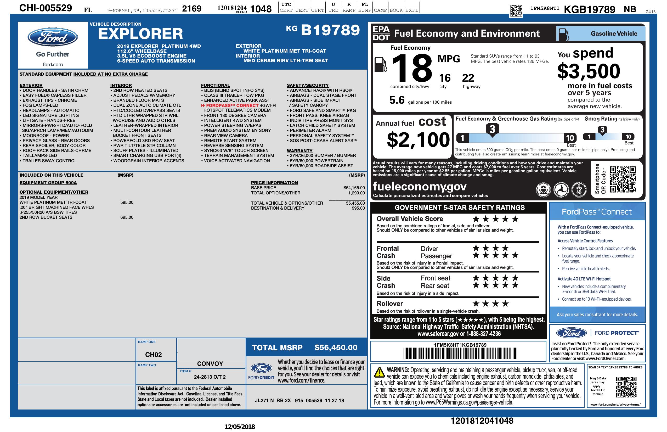 2019 Ford Explorer Platinum 4 Wd