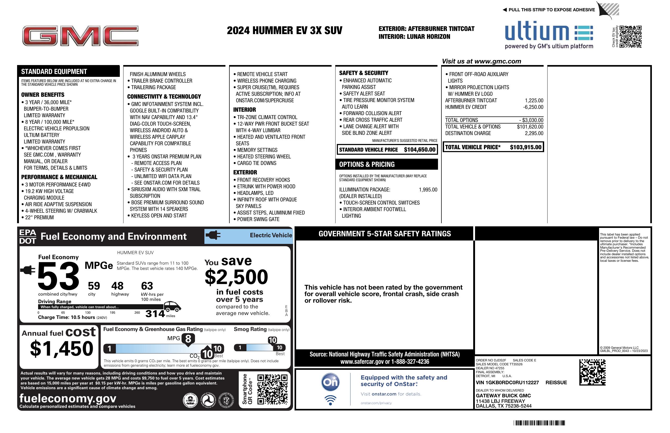 2024 GMC Hummer Ev Suv E4 Wd 4dr 3 X