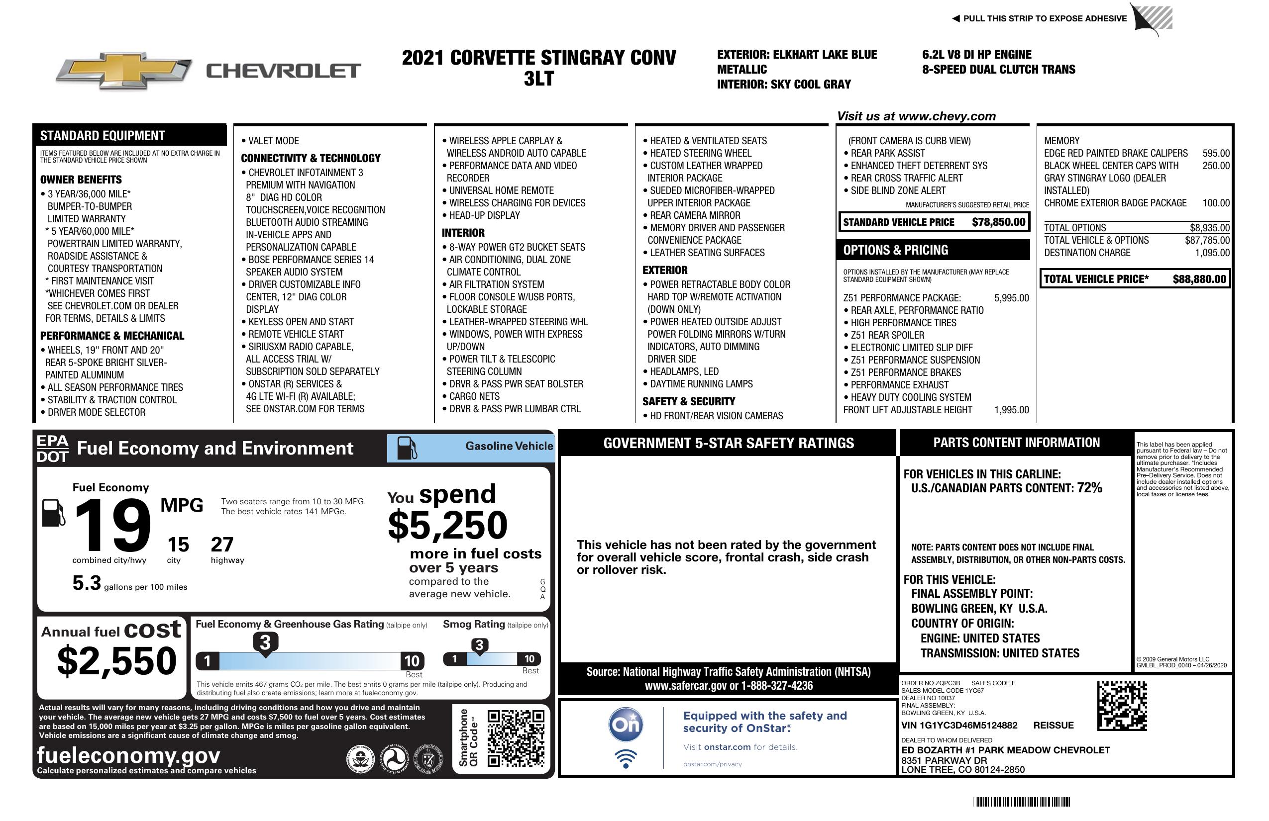 2021 Chevrolet Corvette 2dr Stingray Conv W/3 Lt