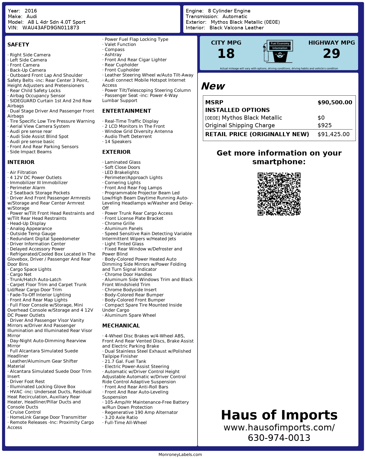 2016 Audi A8 L 4dr Sdn 4.0 T Sport