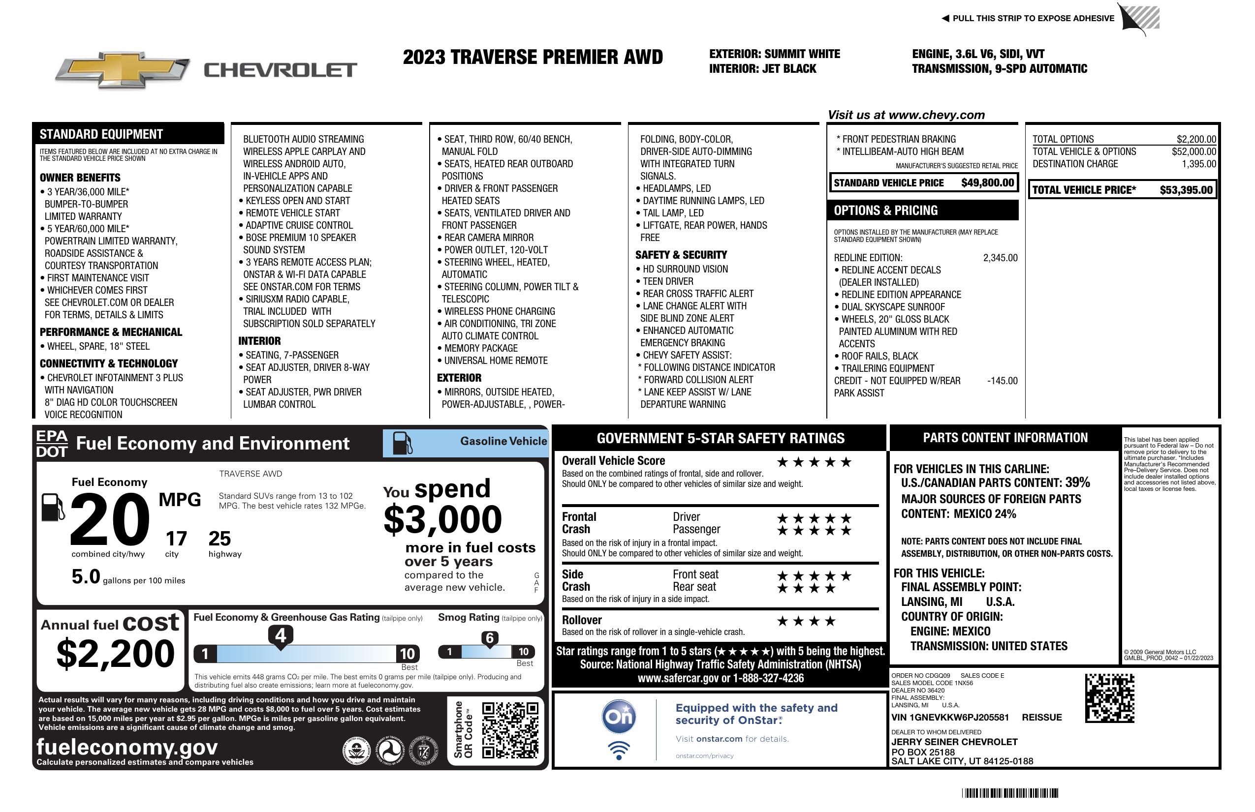 2023 Chevrolet Traverse Awd 4dr Premier