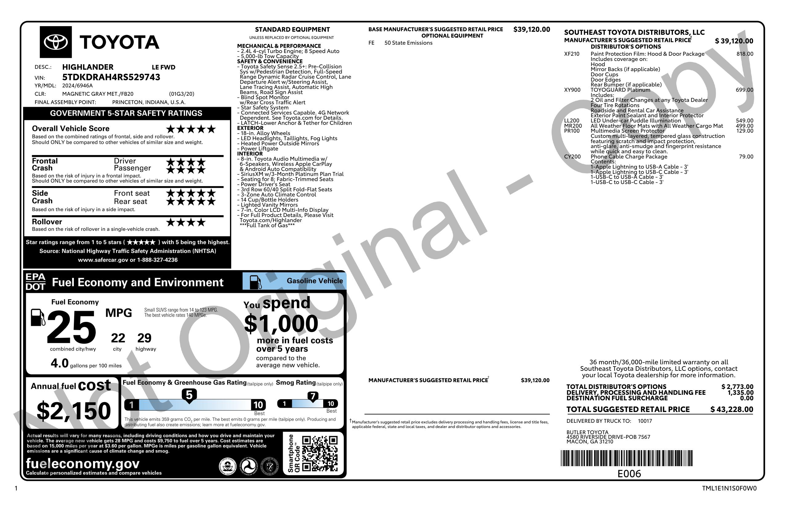 2024 Toyota Highlander Fwd (Natl)