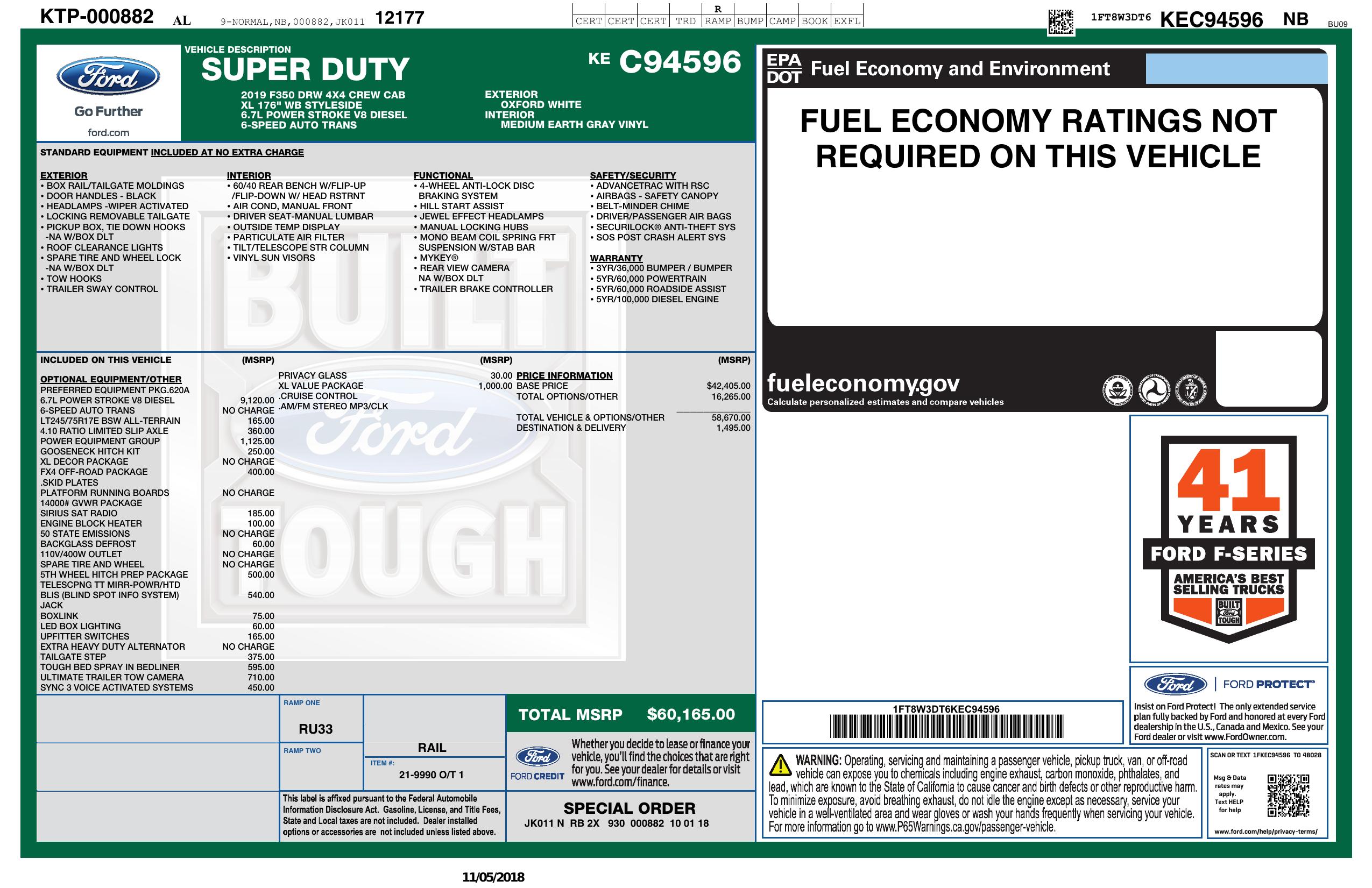 2019 Ford Super Duty F 350 Drw 4 Wd Crew Cab 8' Box