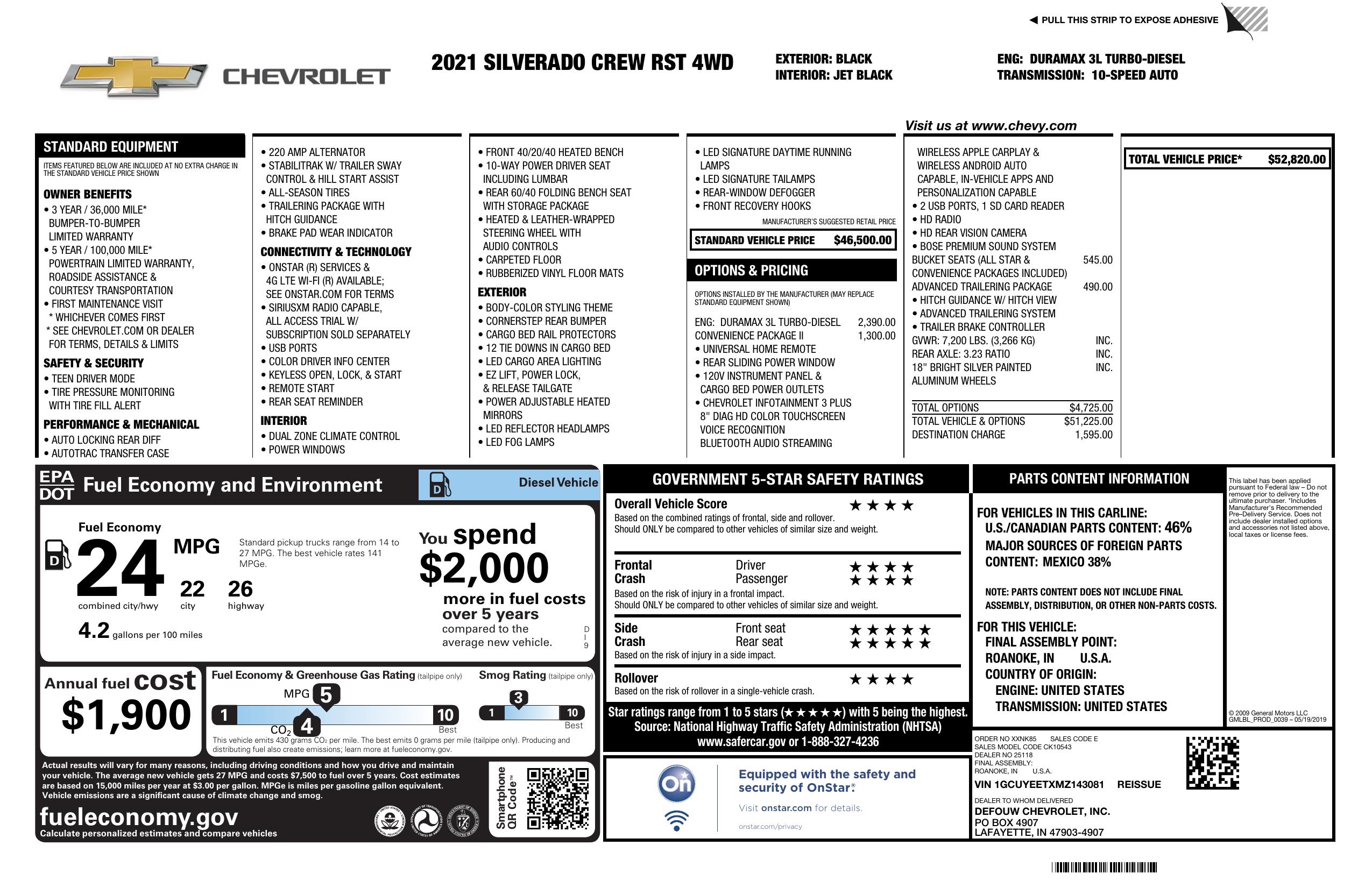 2021 Chevrolet Silverado 1500 4 Wd Crew Cab 147" Rst