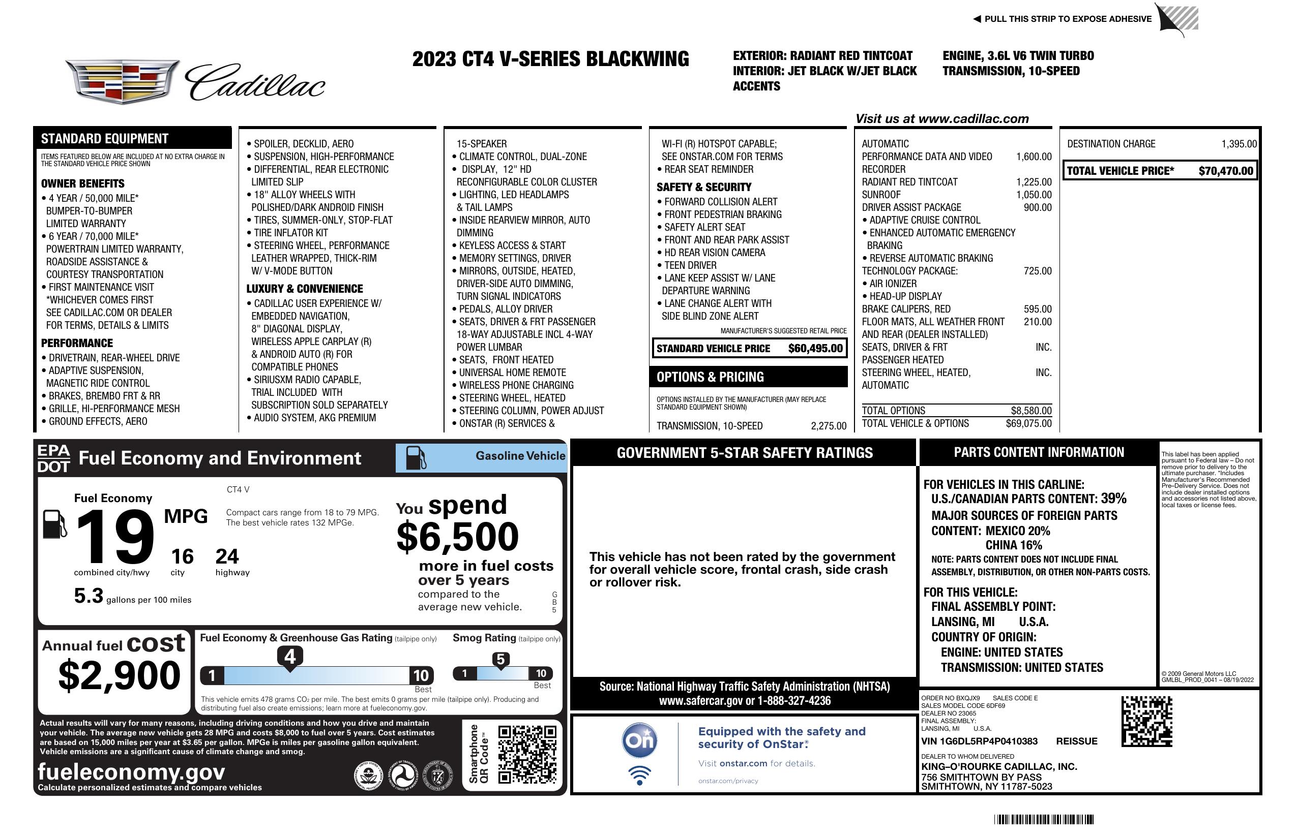 2023 Cadillac Ct4 V 4dr Sdn Blackwing