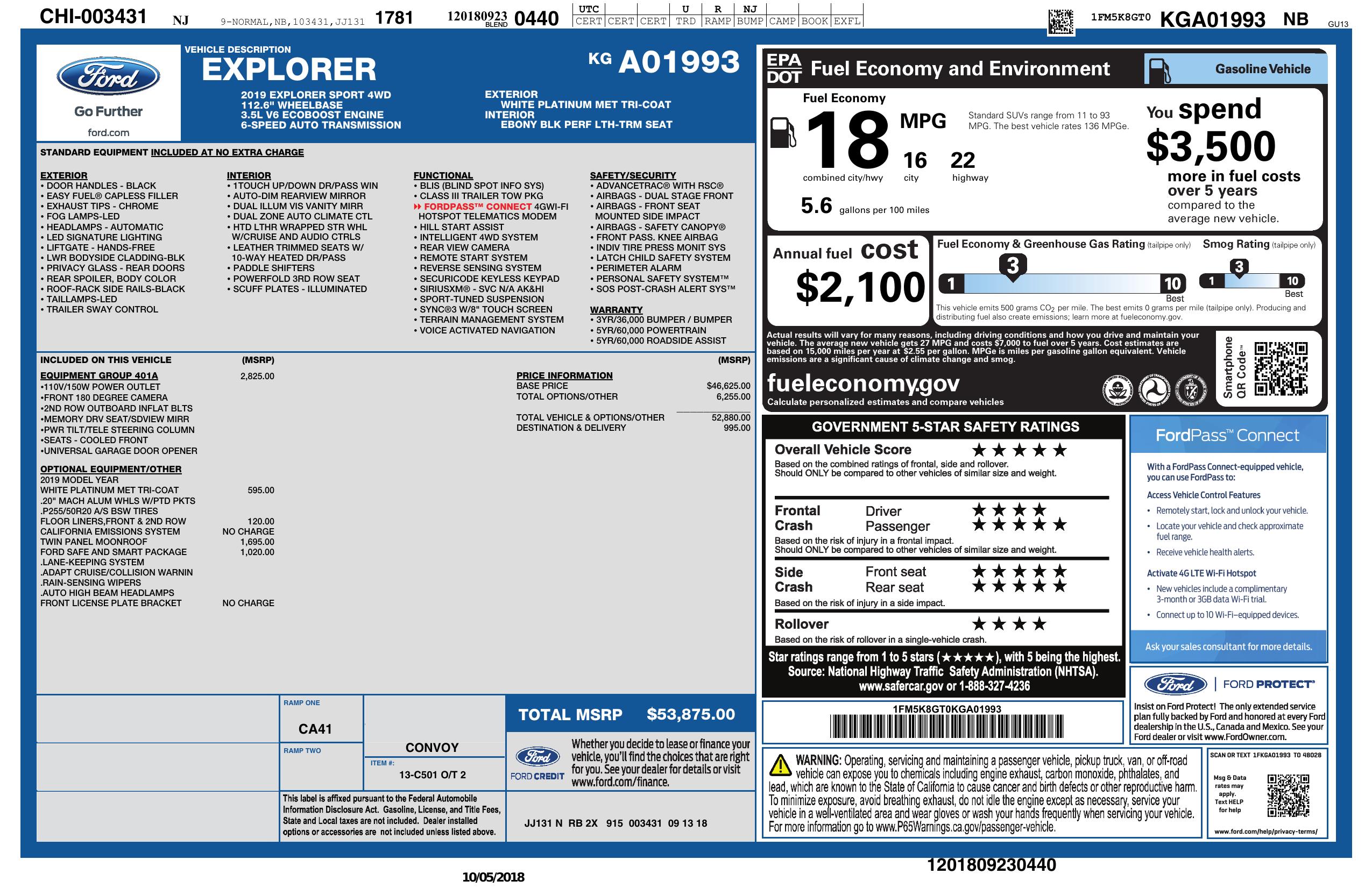 2019 Ford Explorer Sport 4 Wd
