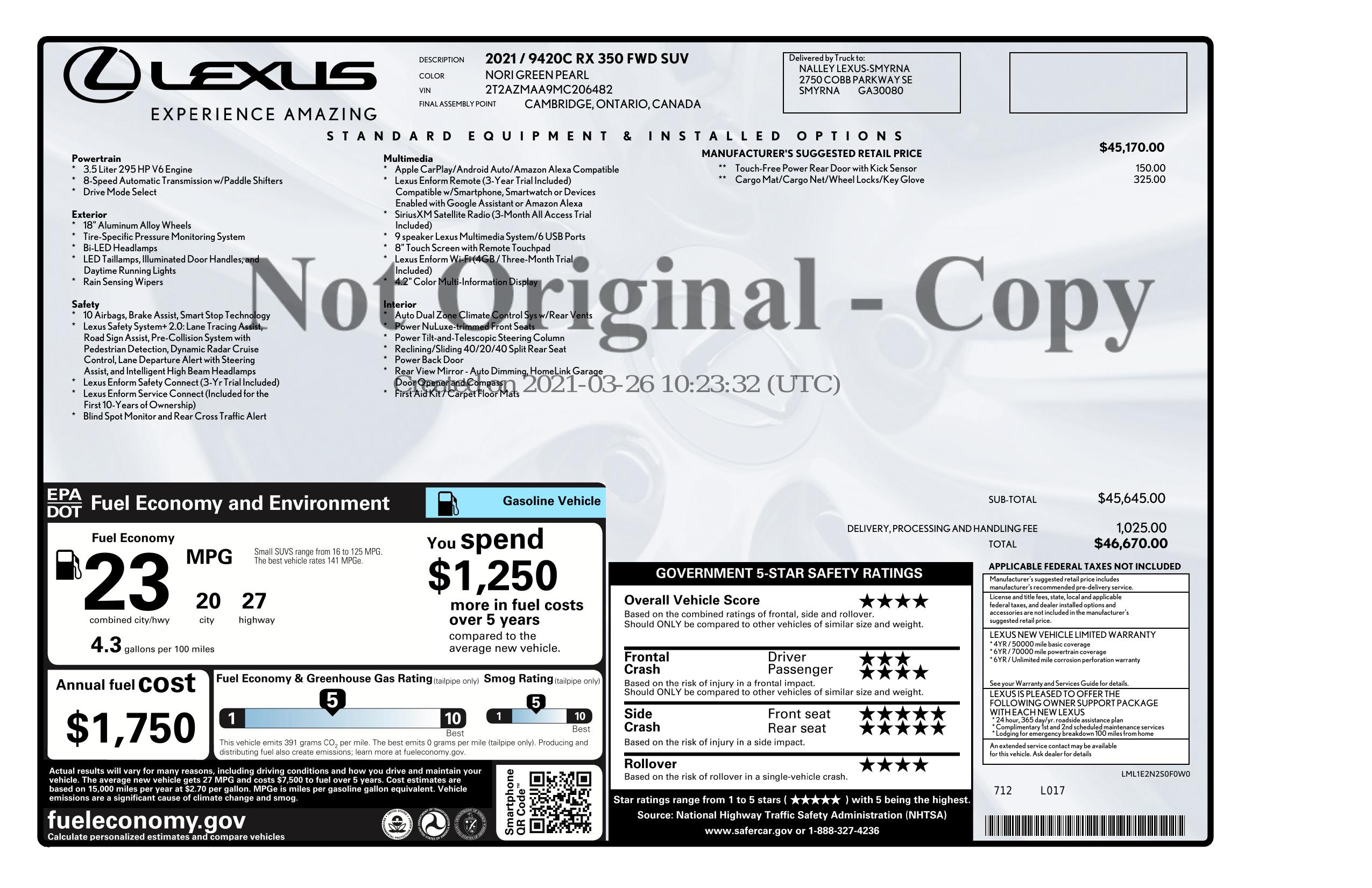 2021 Lexus Rx Rx 350 Fwd