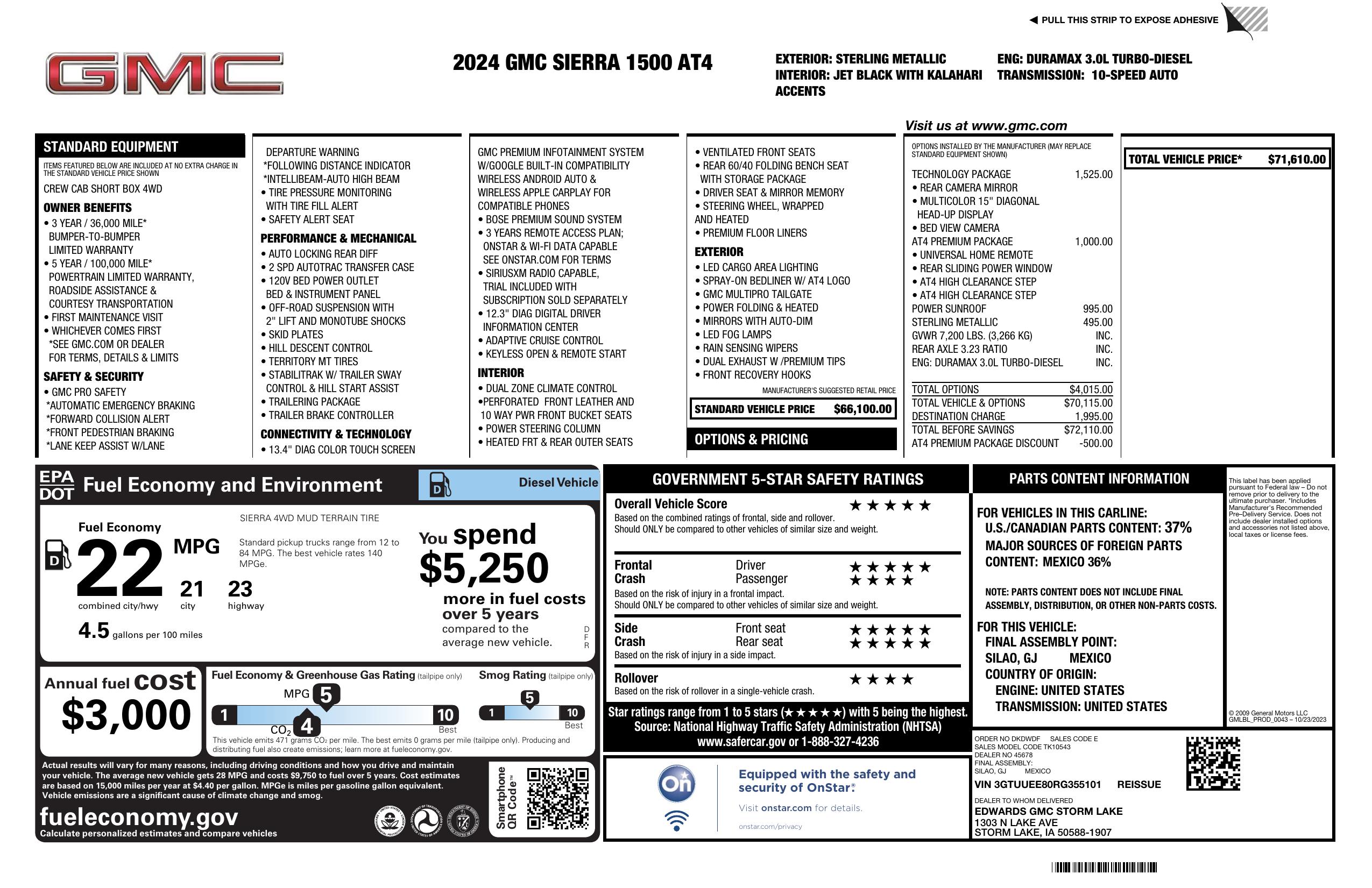 2024 GMC Sierra 1500 4 Wd Crew Cab 147" At4