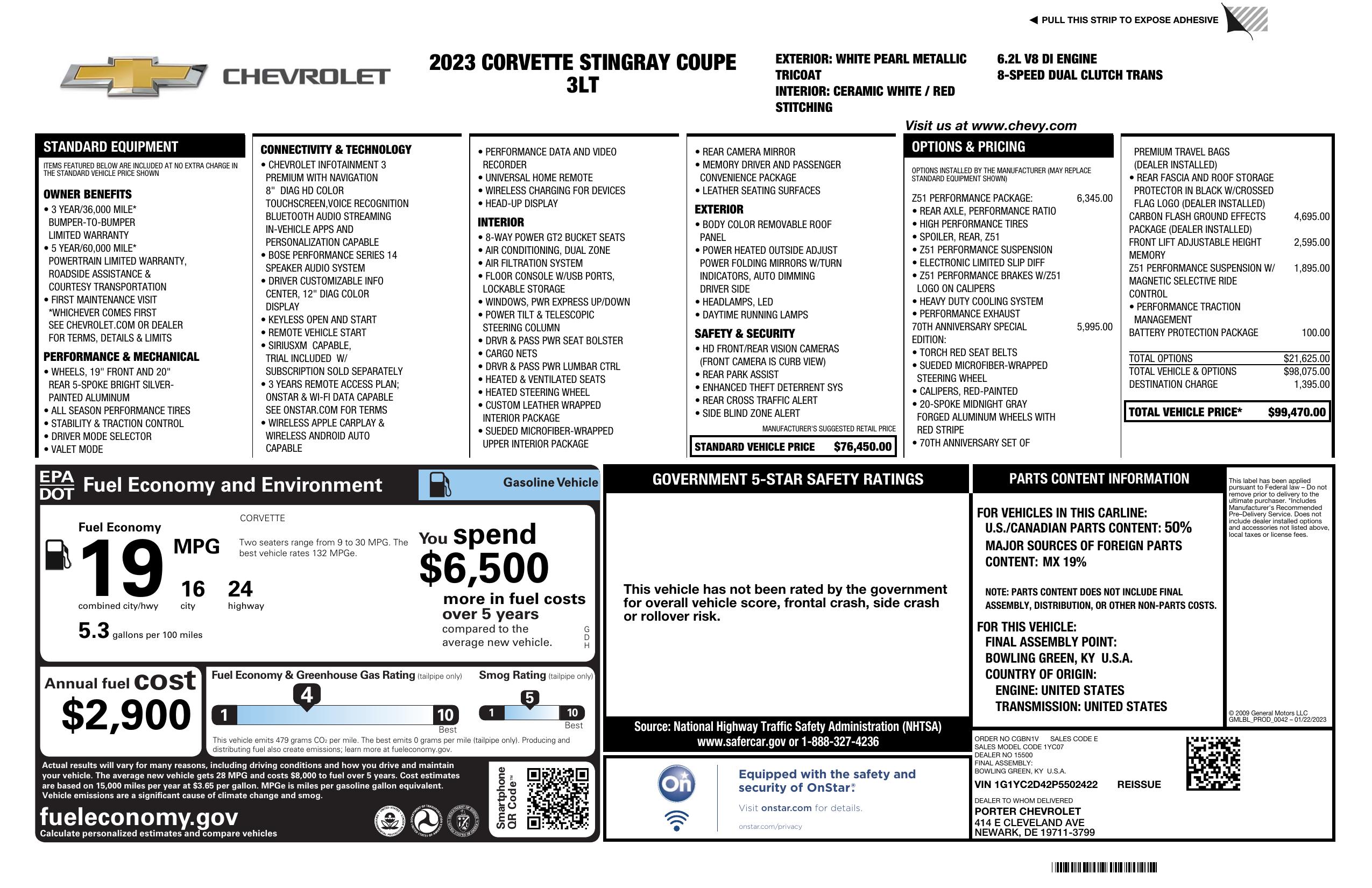 2023 Chevrolet Corvette 2dr Stingray Cpe W/3 Lt