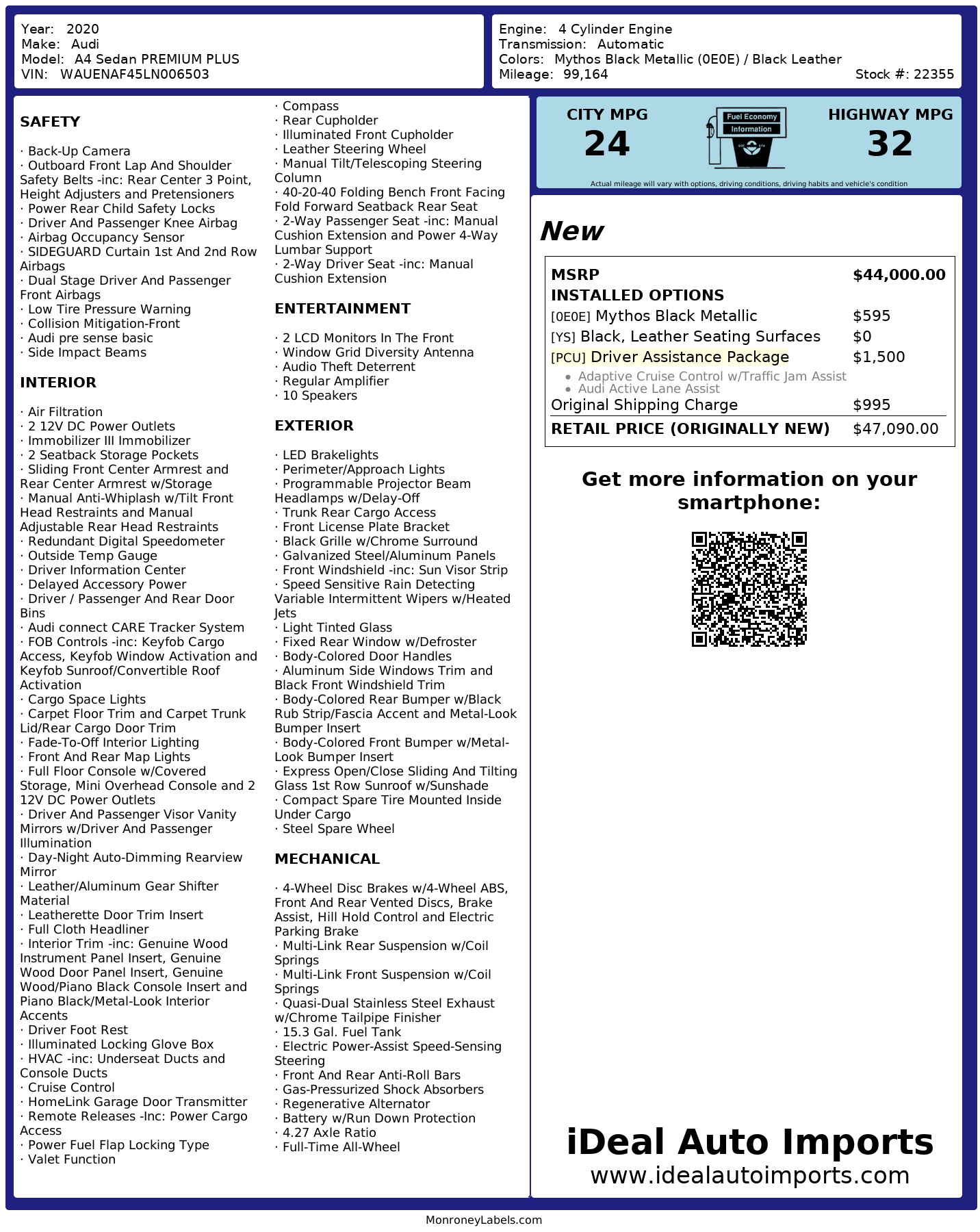 2020 Audi A4 Sedan Premium Plus