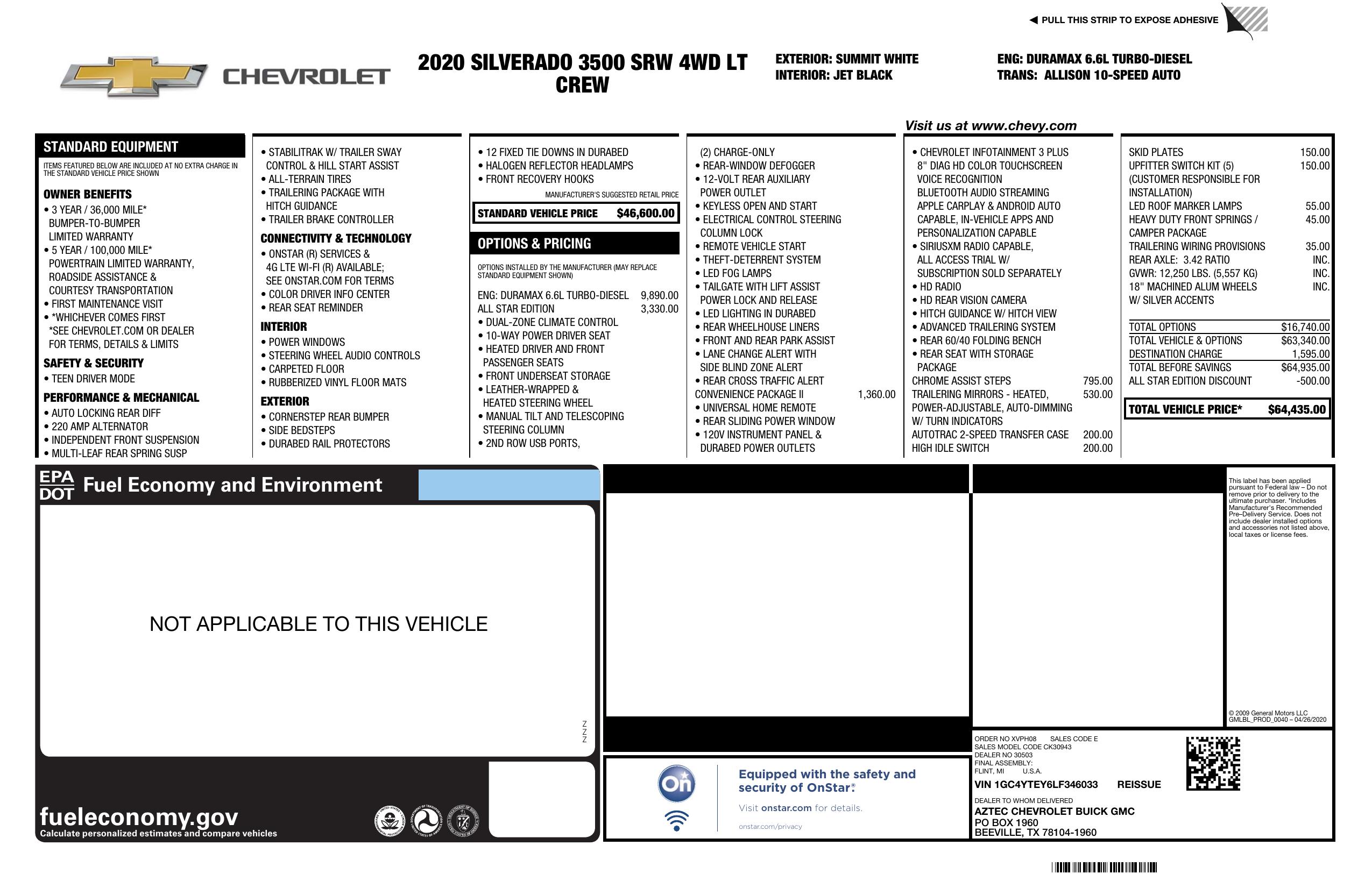 2020 Chevrolet Silverado 3500 Hd 4 Wd Crew Cab 172" Lt