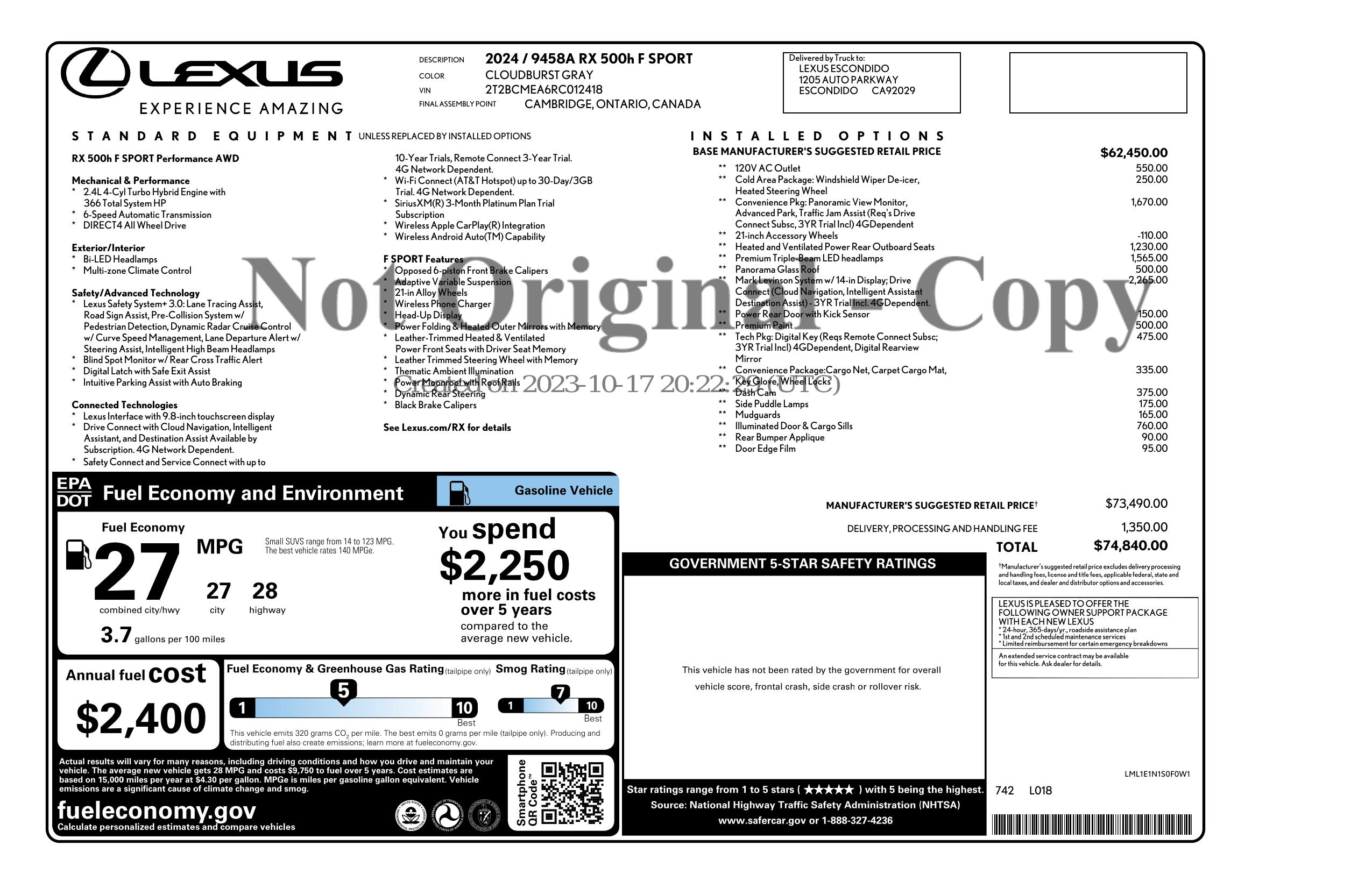2024 Lexus Rx Rx 500h F Sport Performance Awd