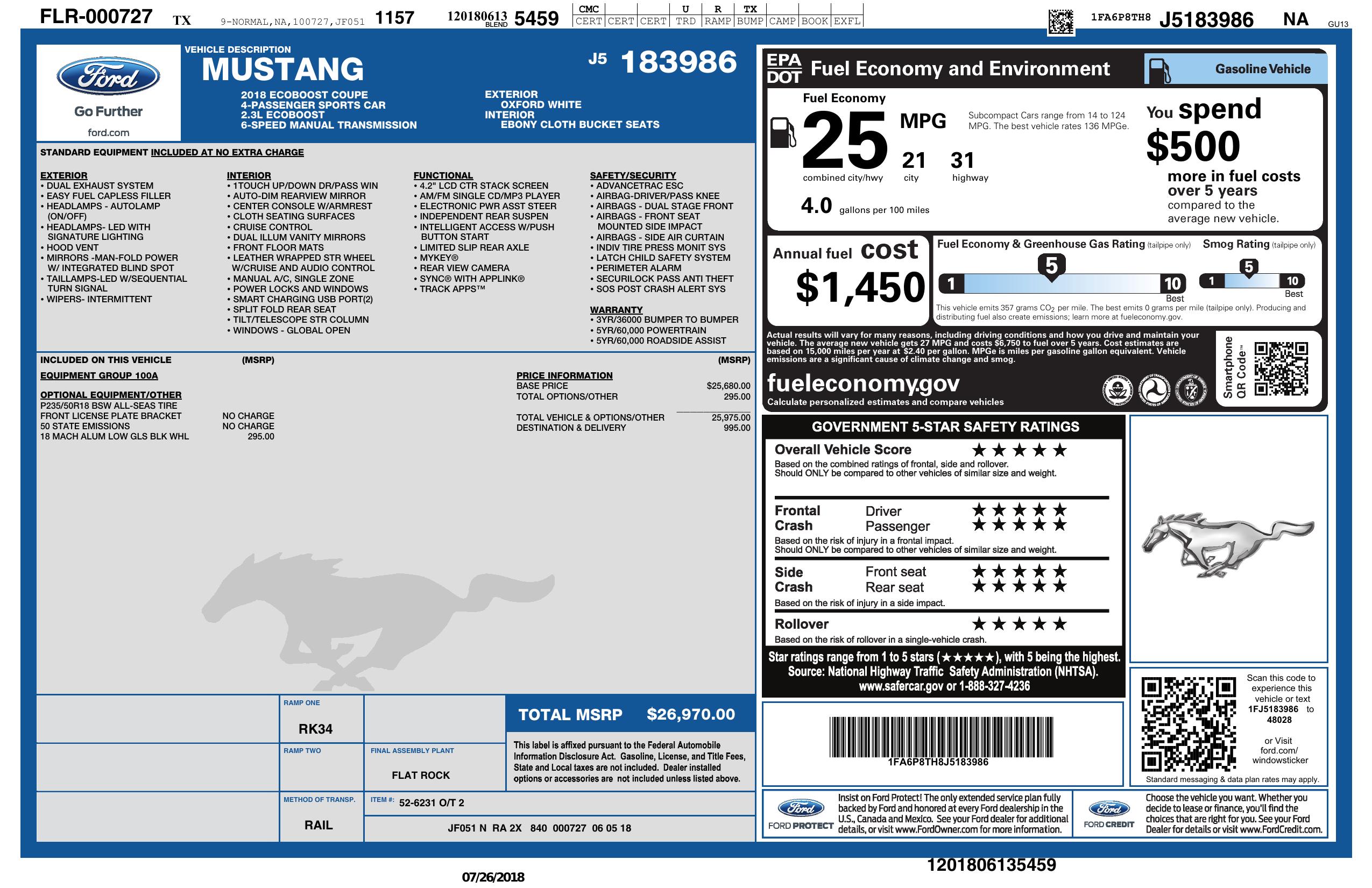 2018 Ford Mustang Eco Boost Fastback