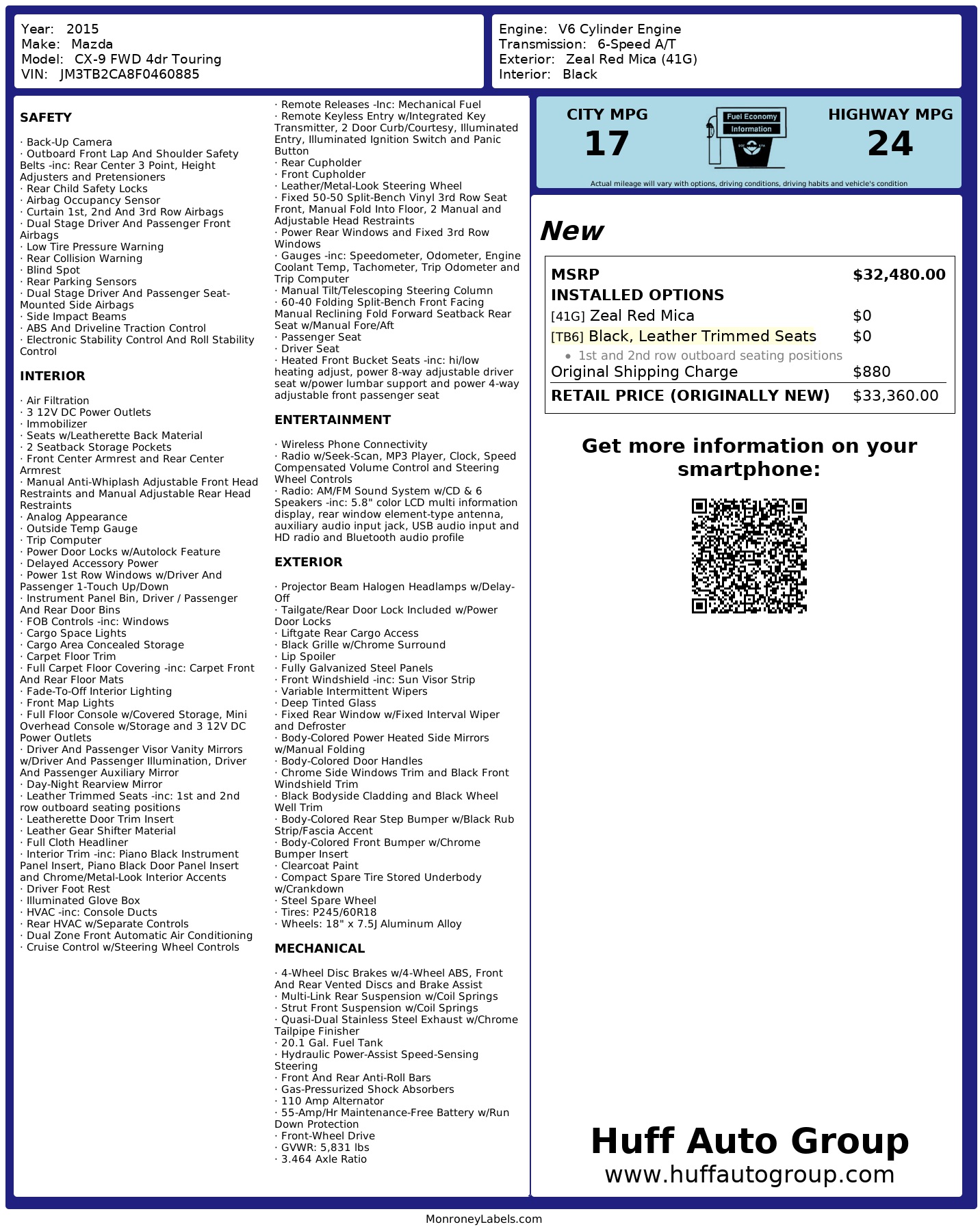 2015 Mazda Cx 9 Fwd 4dr Touring