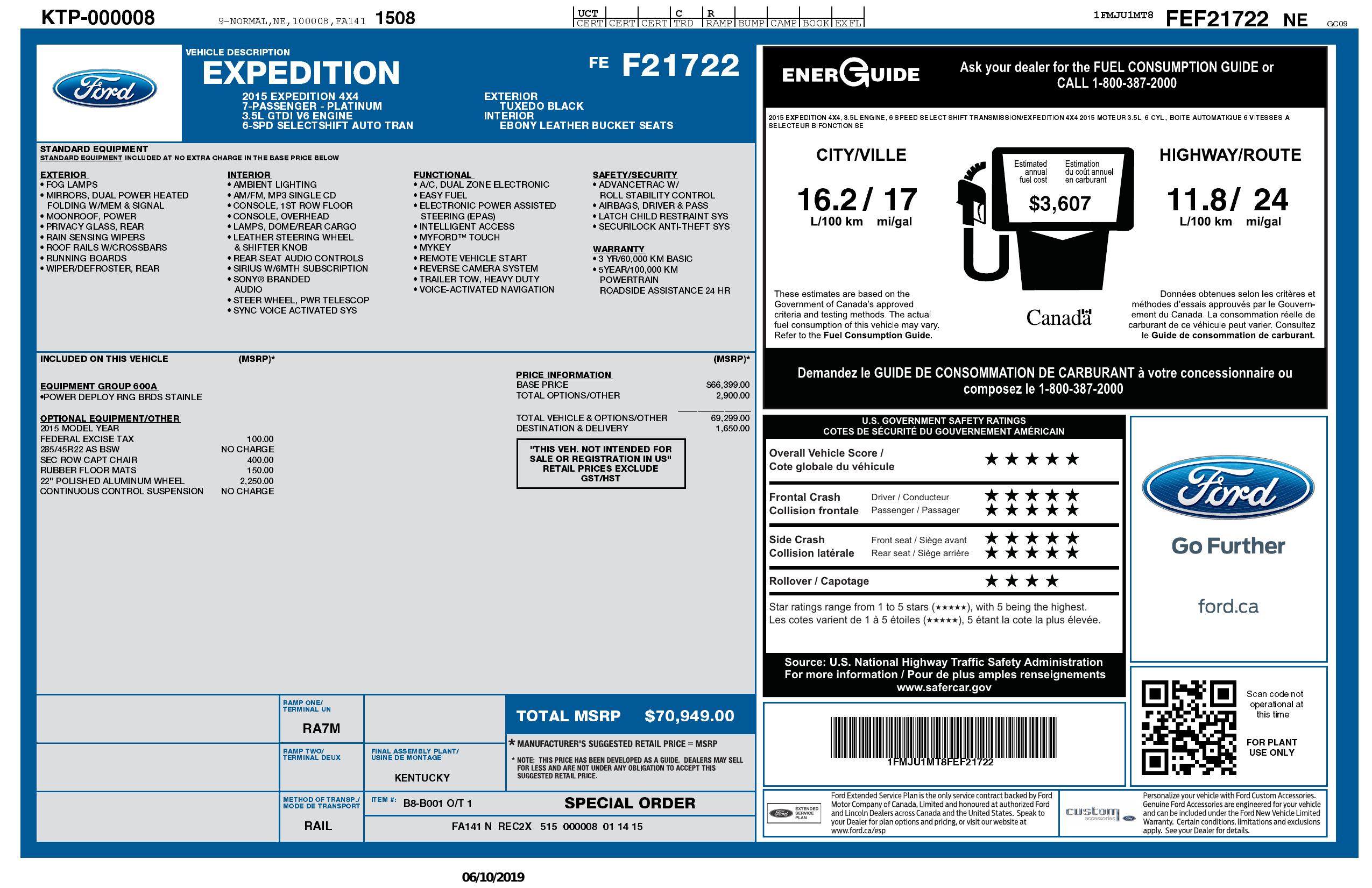 2015 Ford Expedition 4 Wd 4dr Platinum