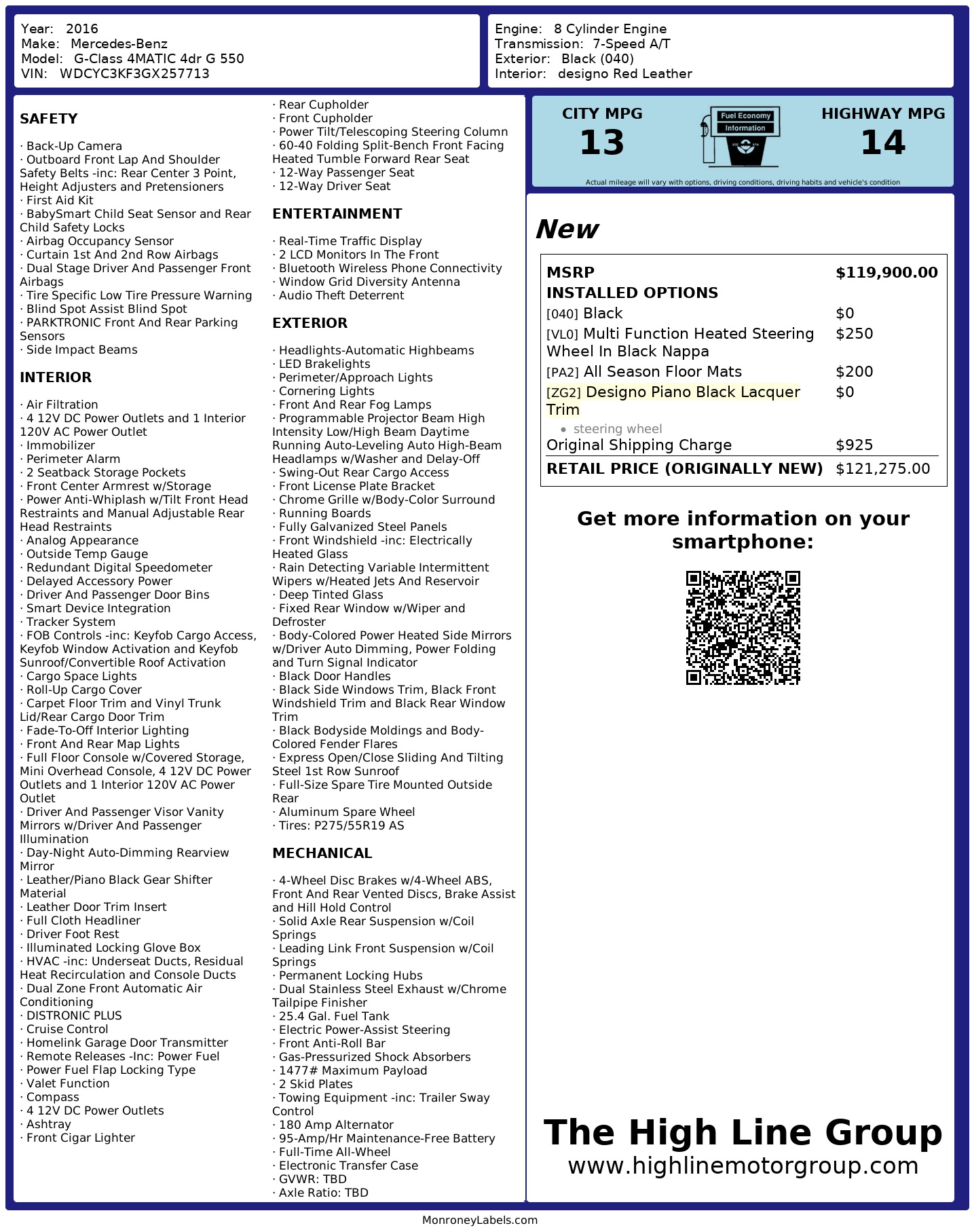 2016 Mercedes Benz G Class 4 Matic 4dr G 550