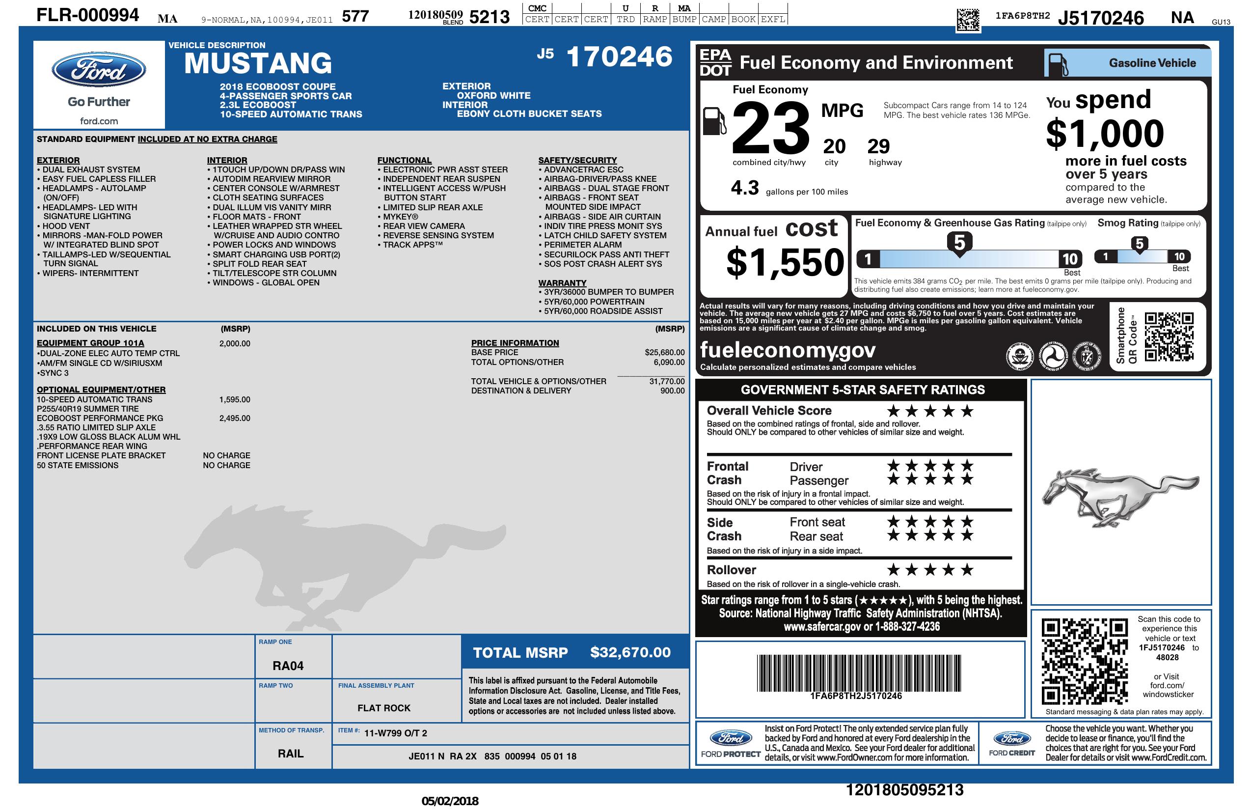 2018 Ford Mustang Eco Boost Fastback