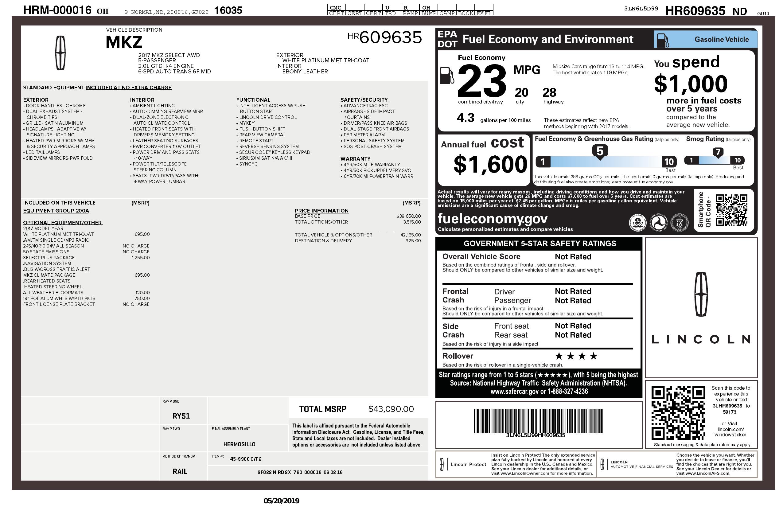 2017 Lincoln Mkz Select Awd