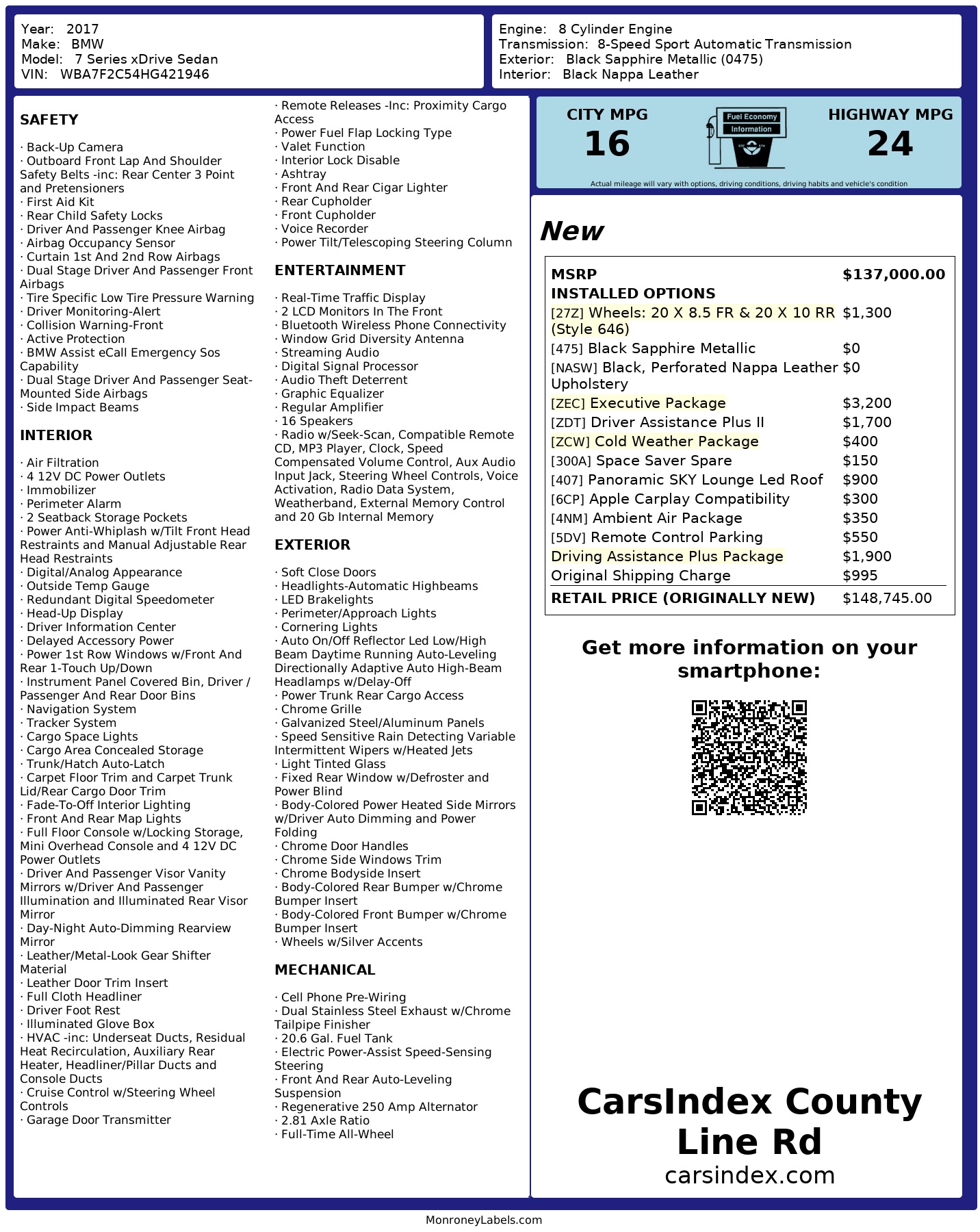 2017 BMW 7 Series X Drive Sedan