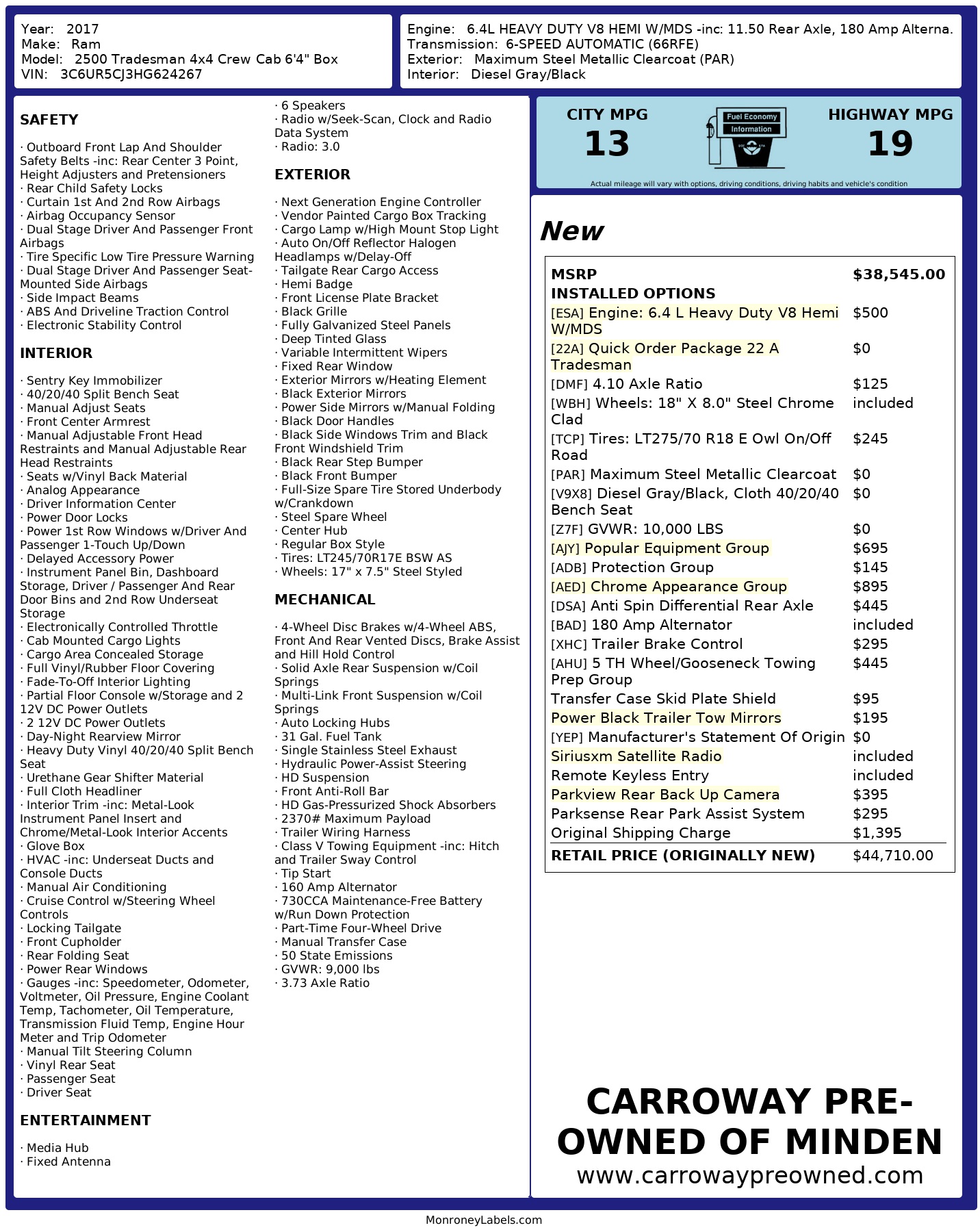 2017 Ram 2500 Tradesman 4x4 Crew Cab 6'4" Box