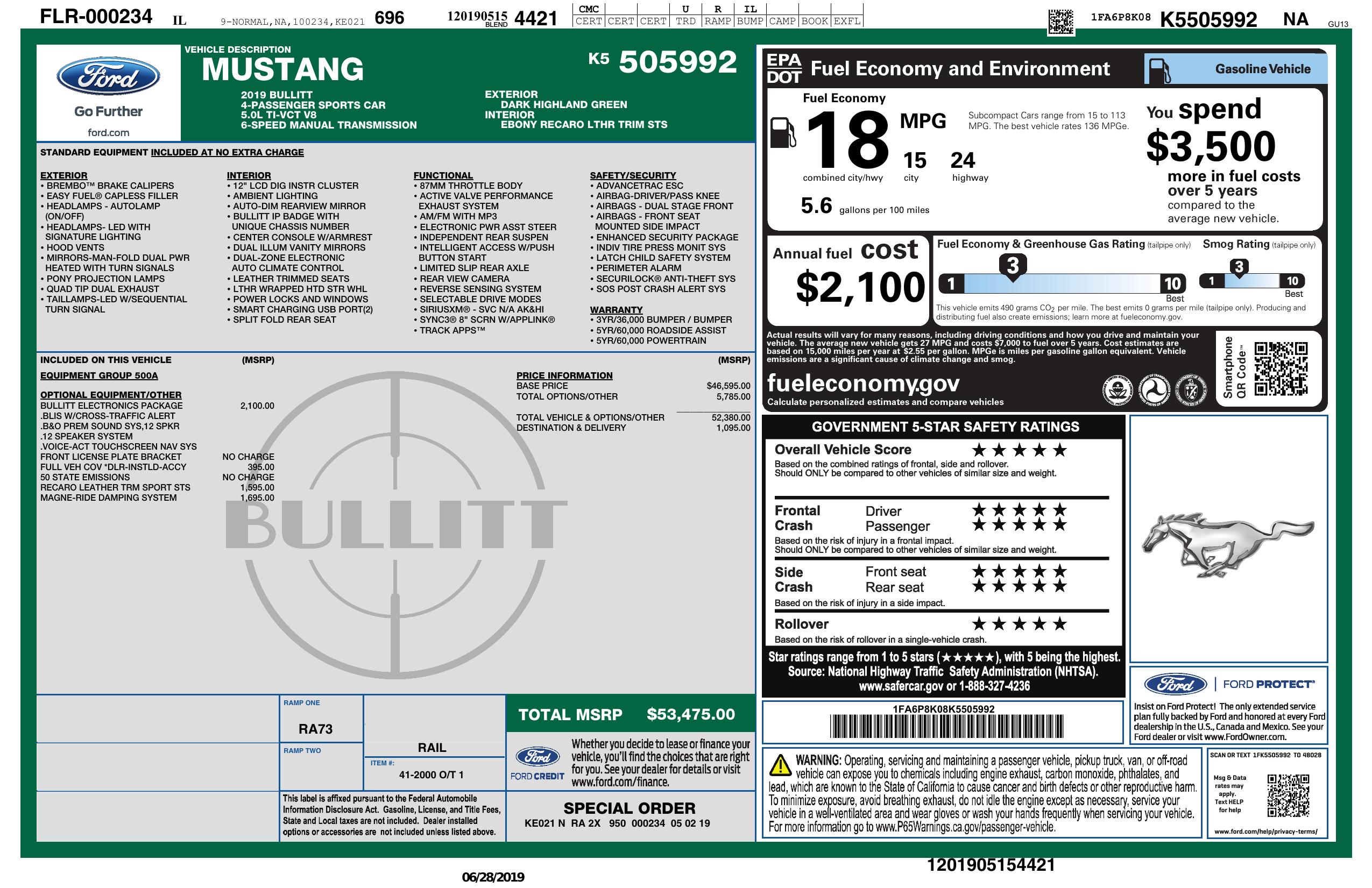 2019 Ford Mustang Bullitt Fastback