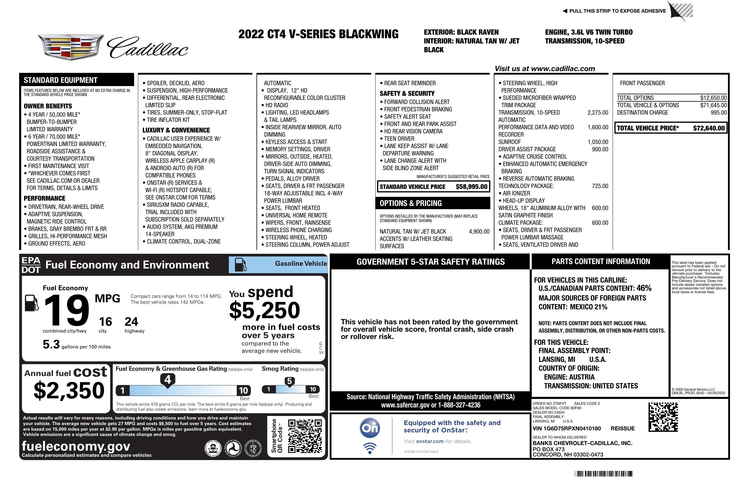2022 Cadillac Ct4 V 4dr Sdn Blackwing