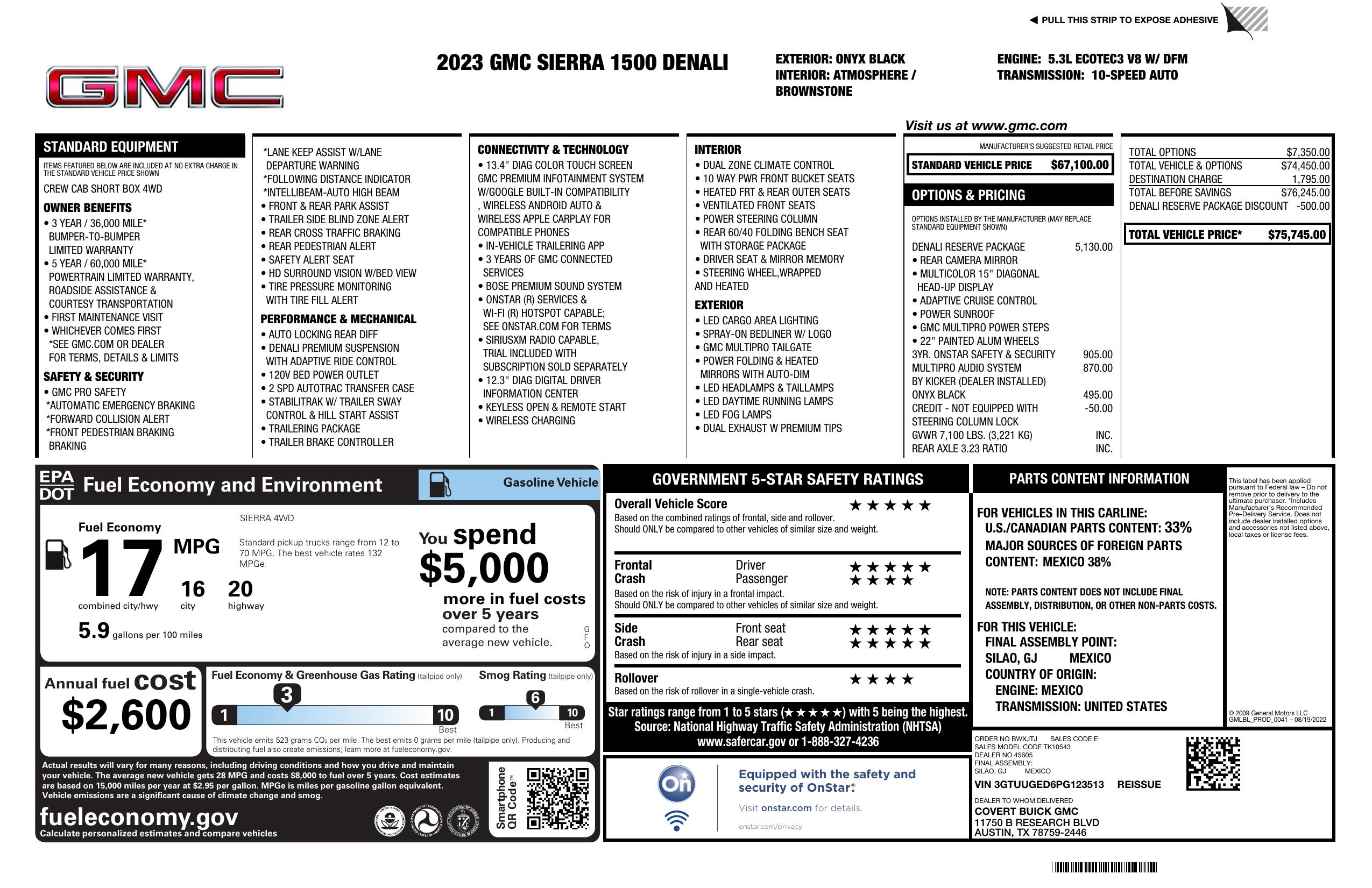 2023 GMC Sierra 1500 4 Wd Crew Cab 147" Denali