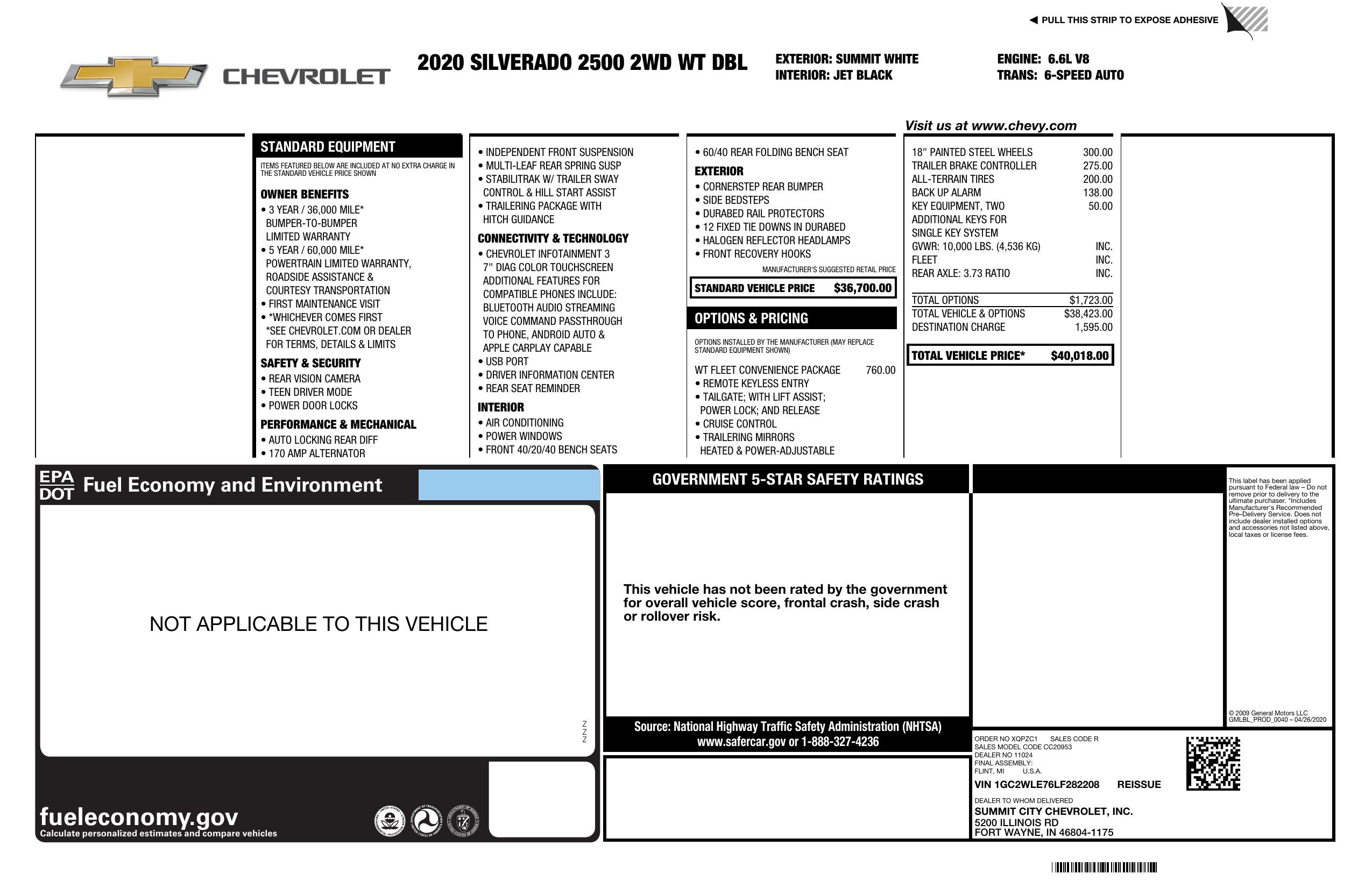 2020 Chevrolet Silverado 2500 Hd 2 Wd Double Cab 162" Work Truck