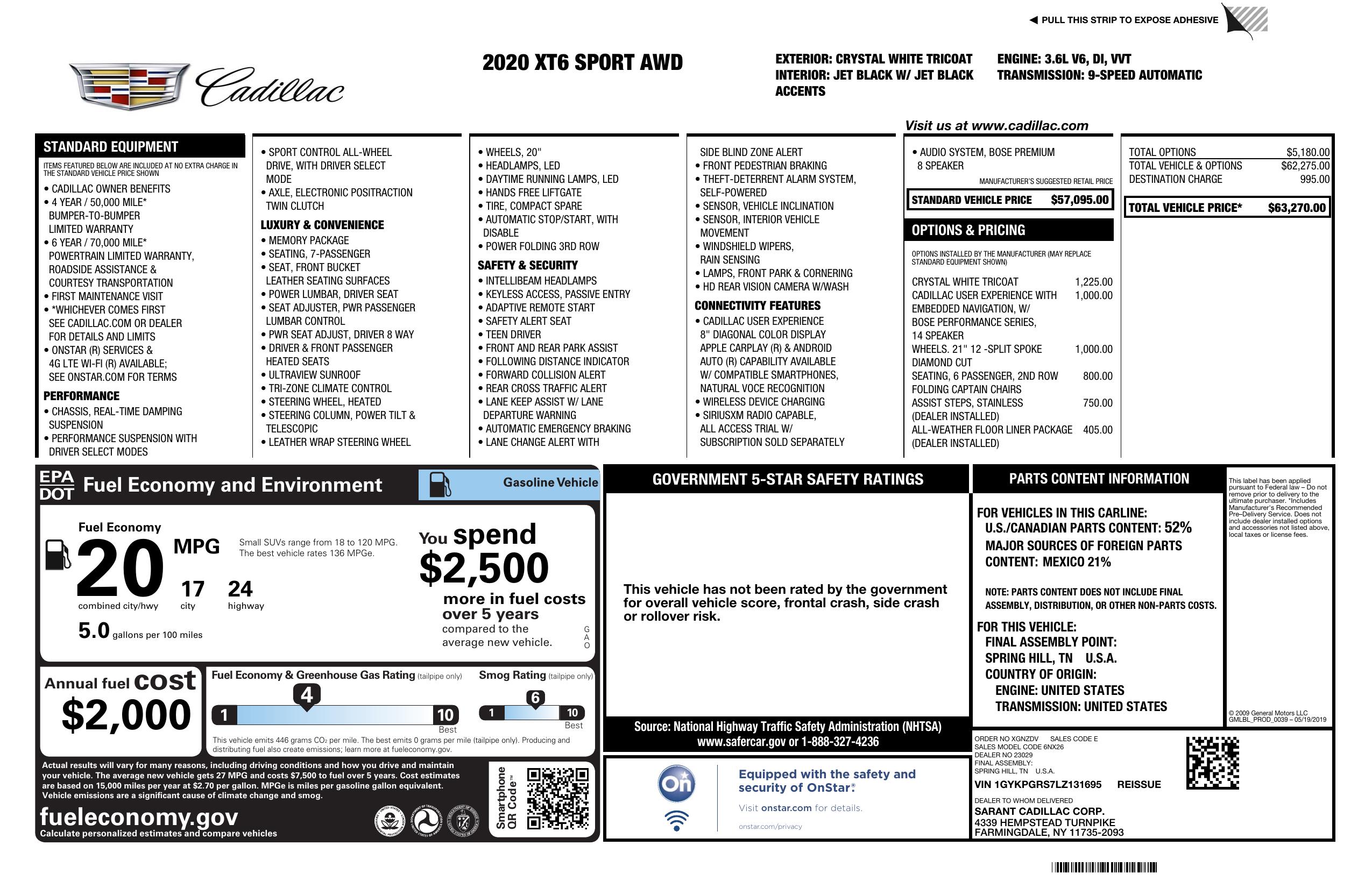 2020 Cadillac Xt6 Awd 4dr Sport