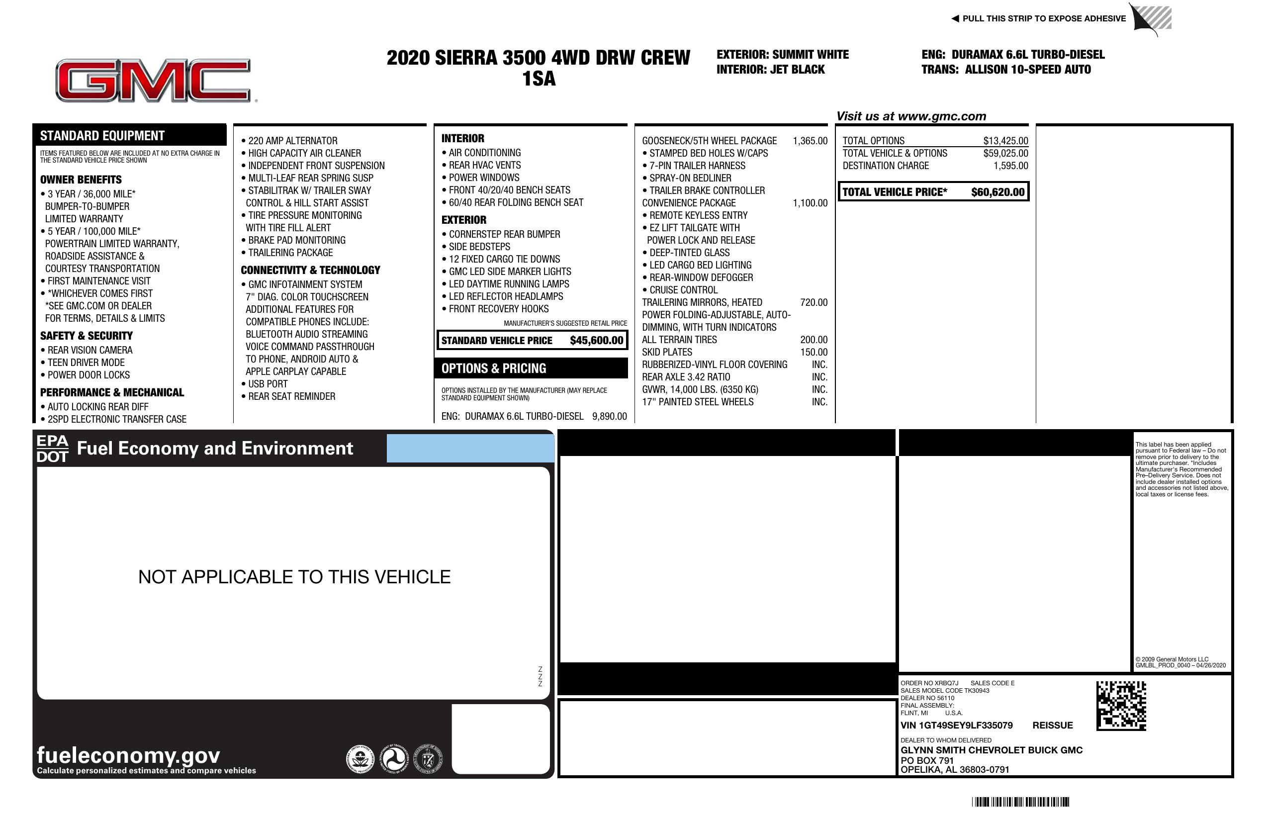 2020 GMC Sierra 3500 Hd 4 Wd Crew Cab 172"