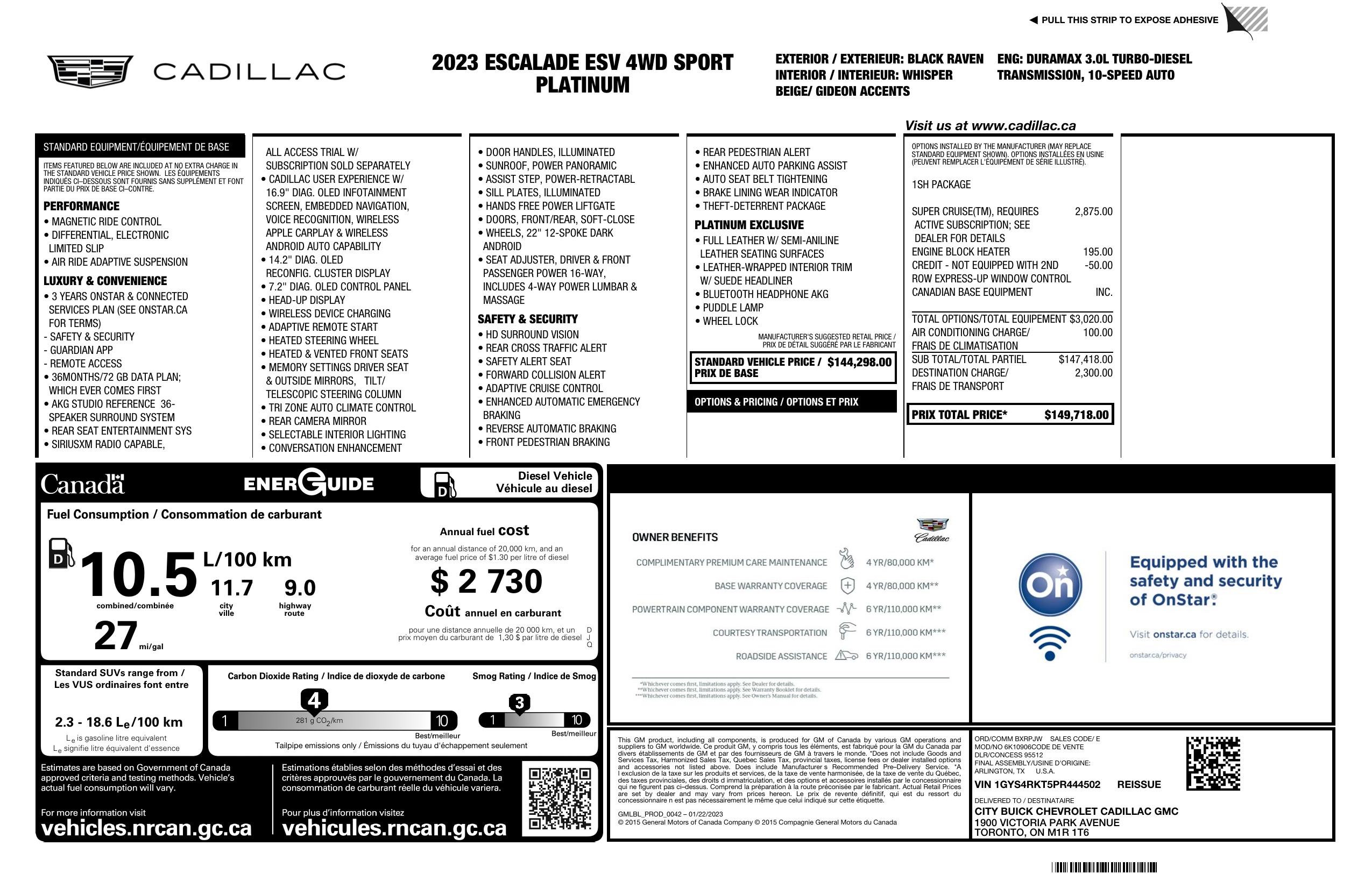 2023 Cadillac Escalade Esv 4 Wd 4dr Sport Platinum