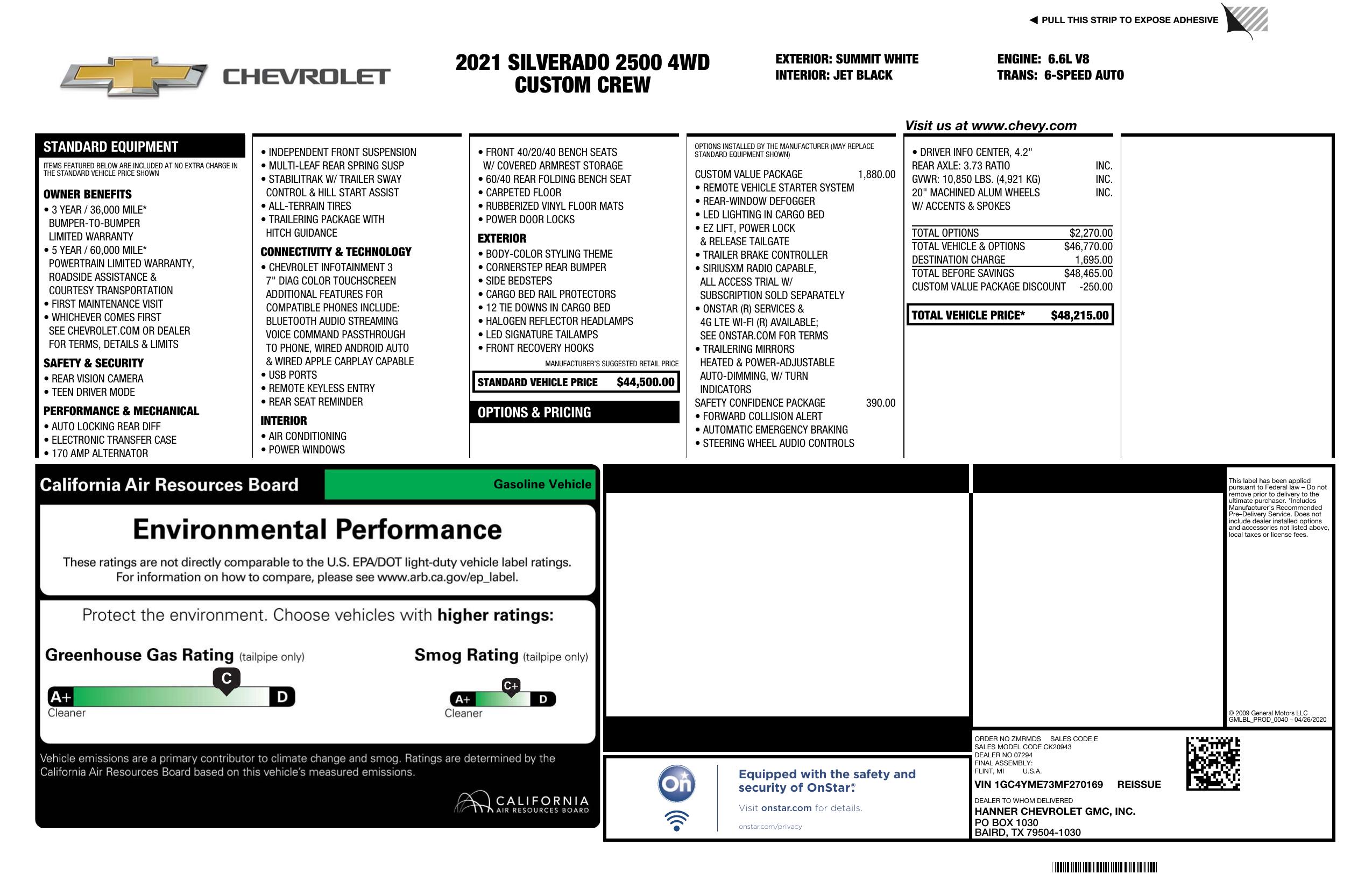 2021 Chevrolet Silverado 2500 Hd 4 Wd Crew Cab 172" Custom