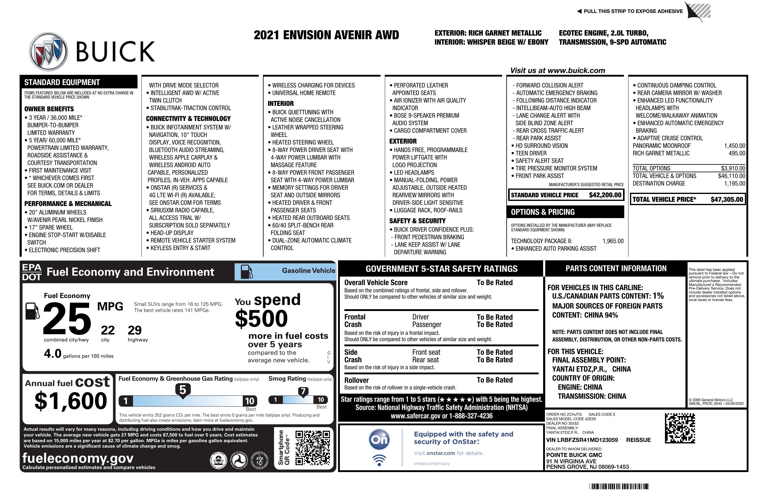 2021 Buick Envision Awd 4dr Avenir