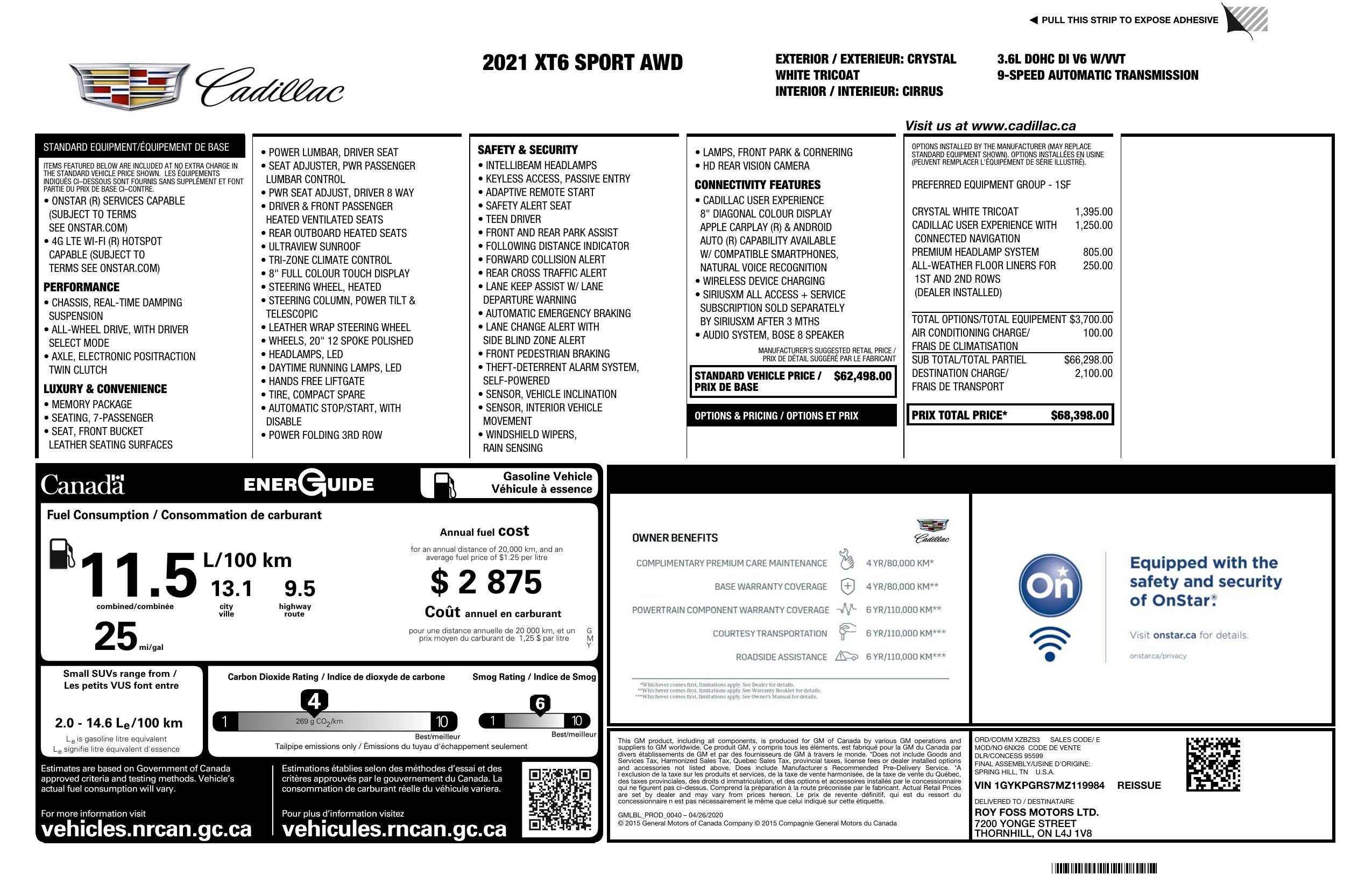 2021 Cadillac Xt6 Awd 4dr Sport