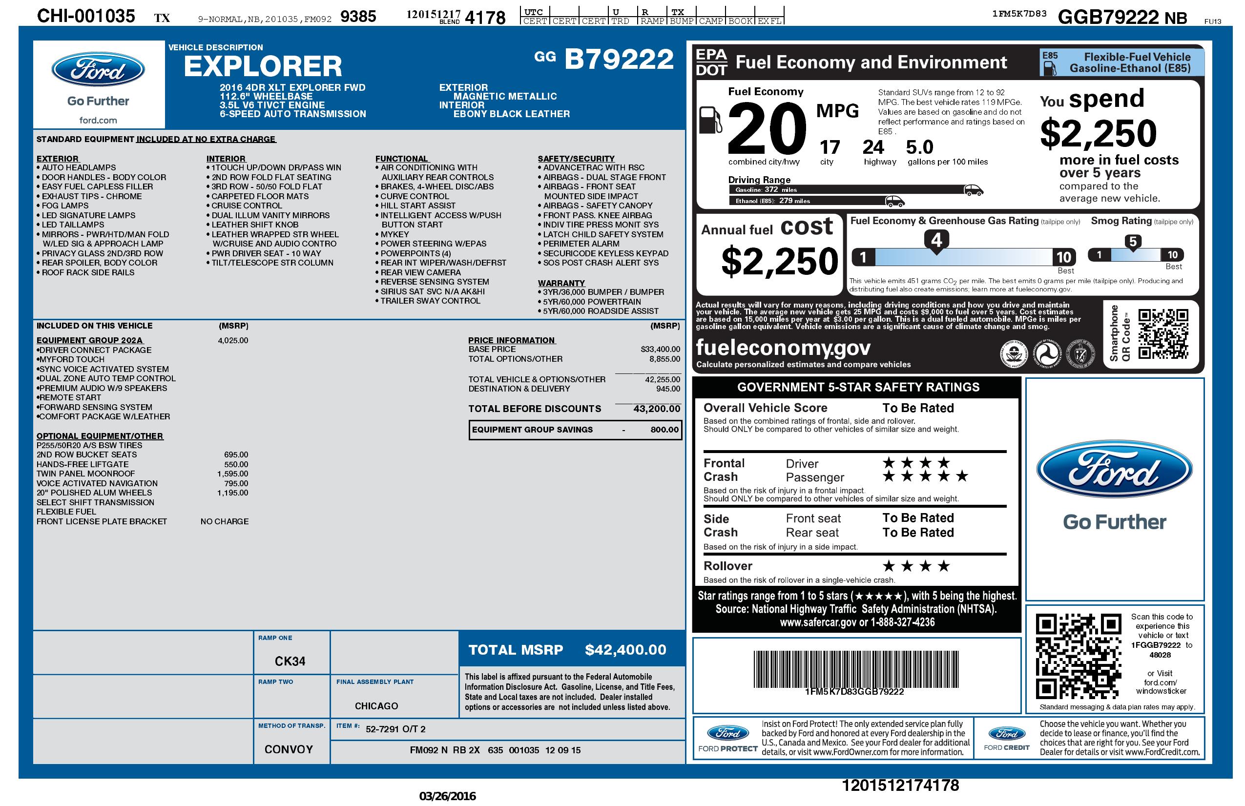 2016 Ford Explorer Fwd 4dr Xlt