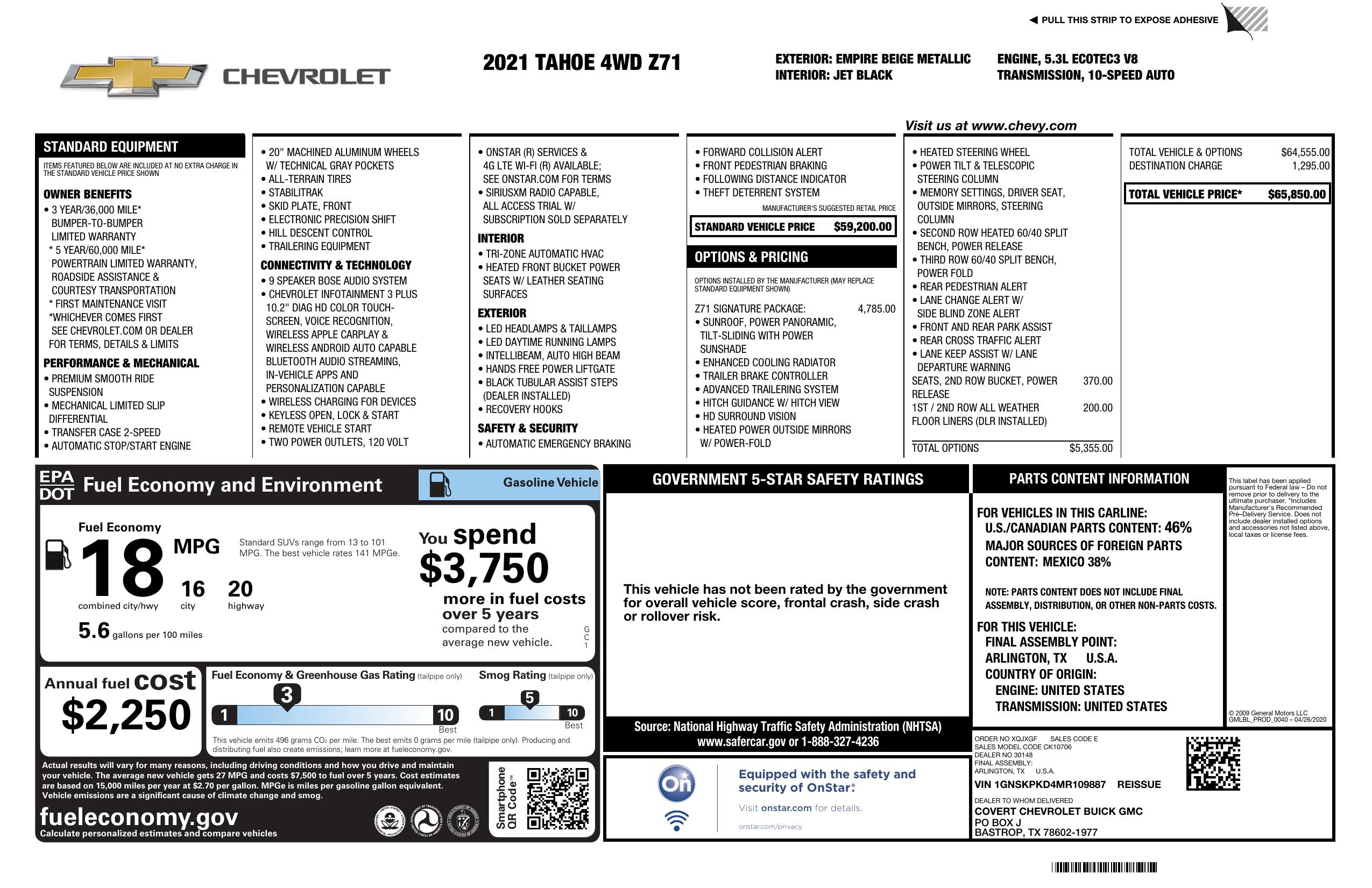 2021 Chevrolet Tahoe 4 Wd 4dr Z71