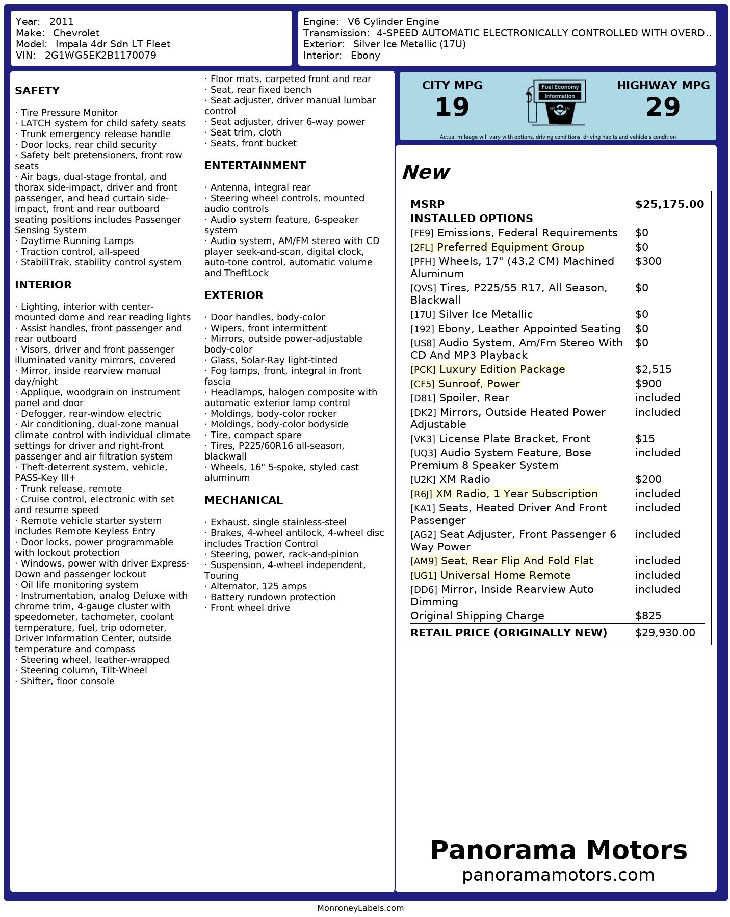 2011 Chevrolet Impala 4dr Sdn Lt Fleet