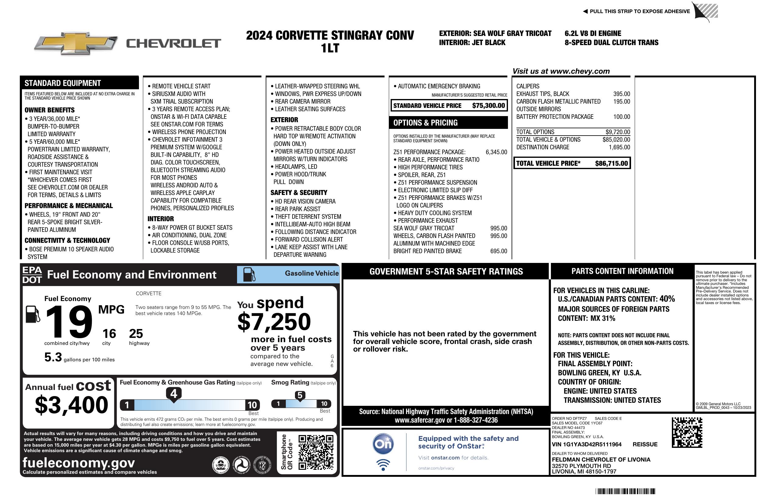 2024 Chevrolet Corvette 2dr Stingray Conv W/1 Lt