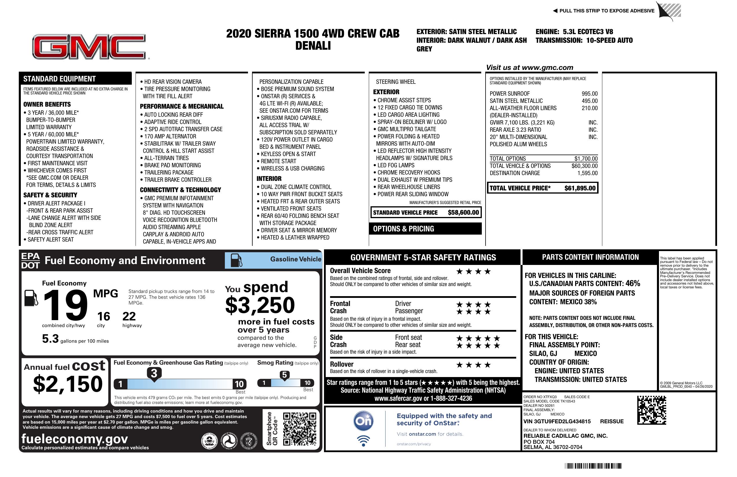 2020 GMC Sierra 1500 4 Wd Crew Cab 147" Denali