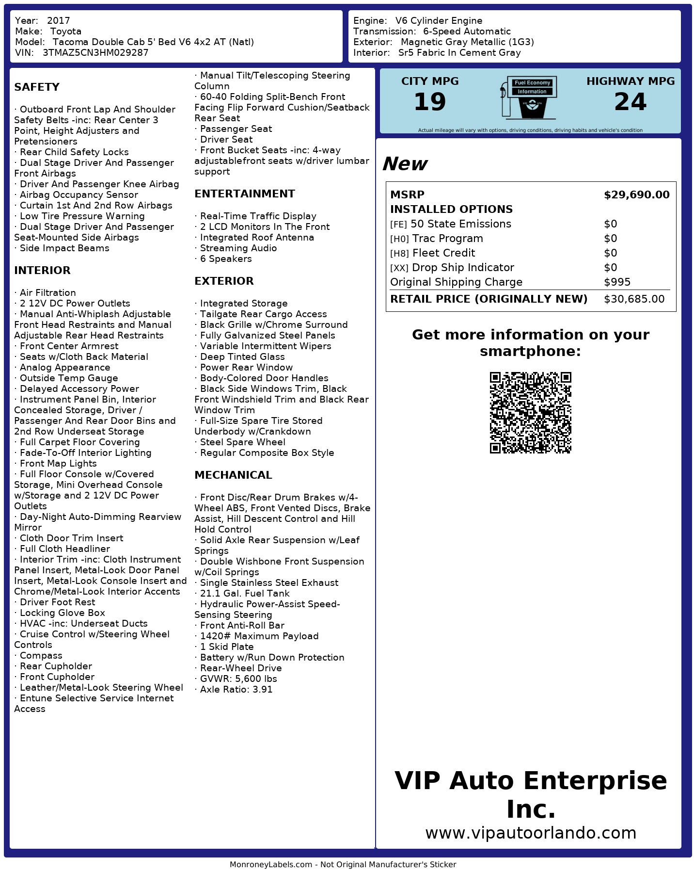 2017 Toyota Tacoma Double Cab 5' Bed V6 4x2 At (Natl)