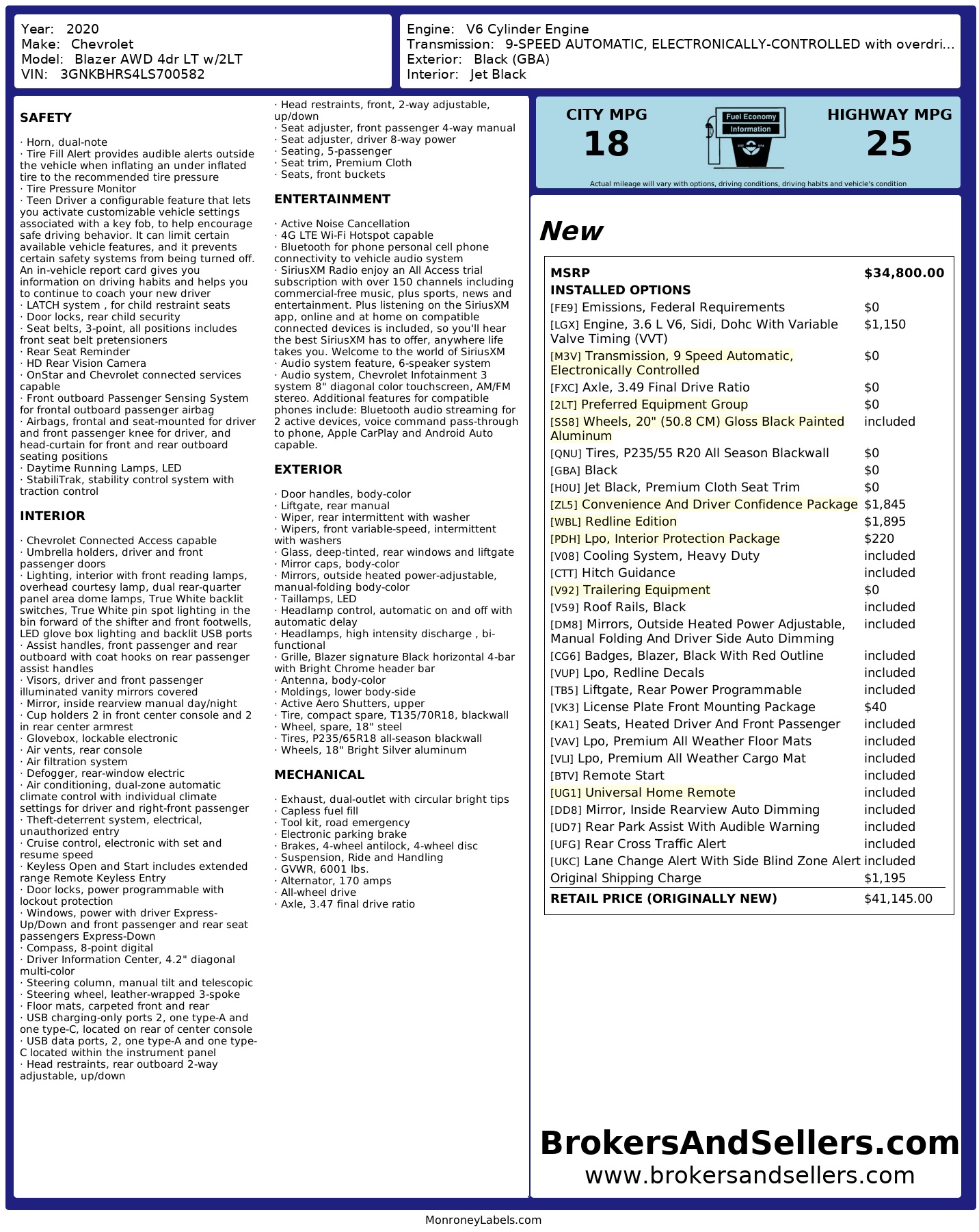 2020 Chevrolet Blazer Awd 4dr Lt W/2 Lt