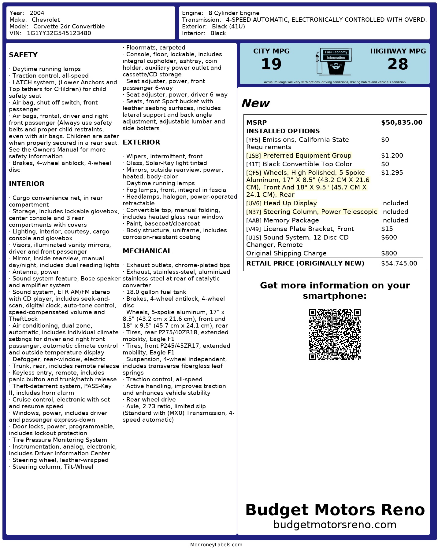 2004 Chevrolet Corvette 2dr Convertible
