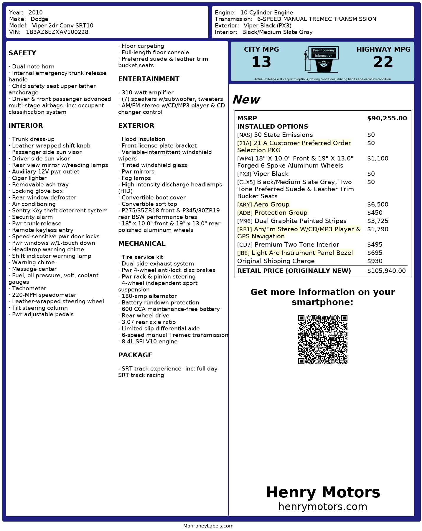 2010 Dodge Viper 2dr Conv Srt10