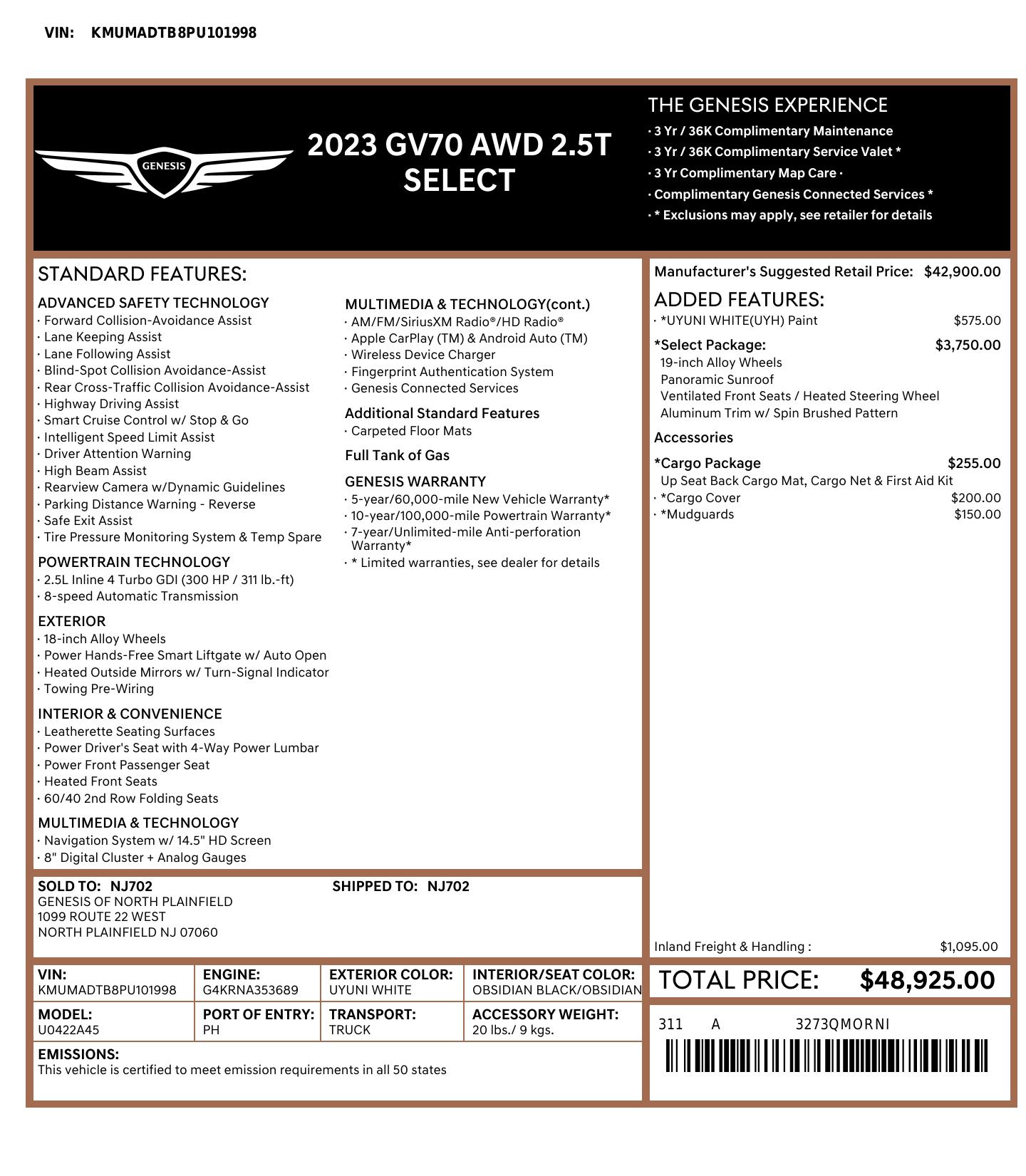2023 Genesis Gv70 Awd 2.5 T Standard 4dr Suv