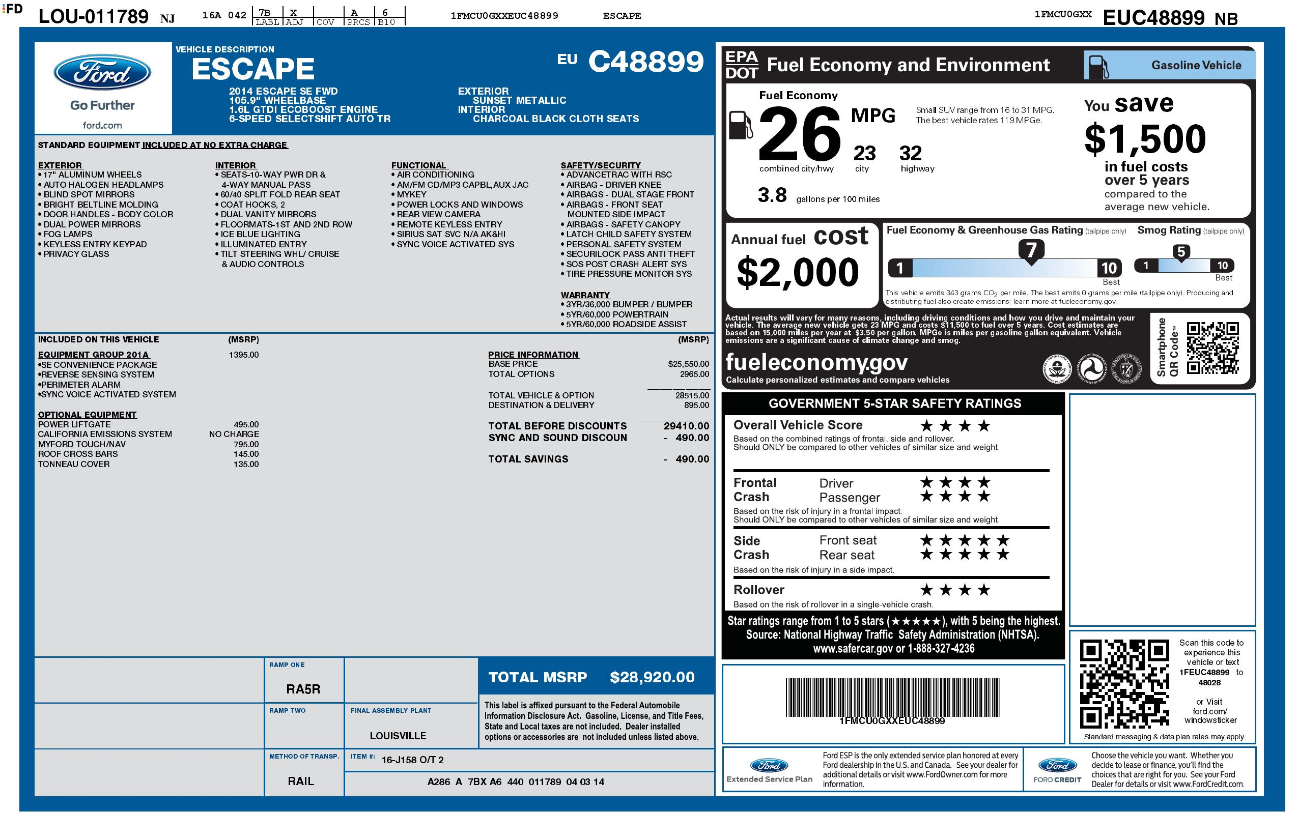 2014 Ford Escape Fwd 4dr Se