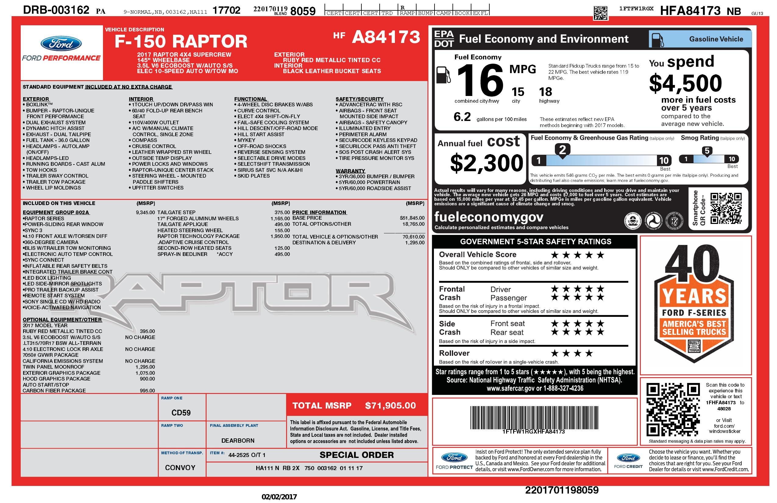 2017 Ford F 150 Raptor 4 Wd Super Crew 5.5' Box