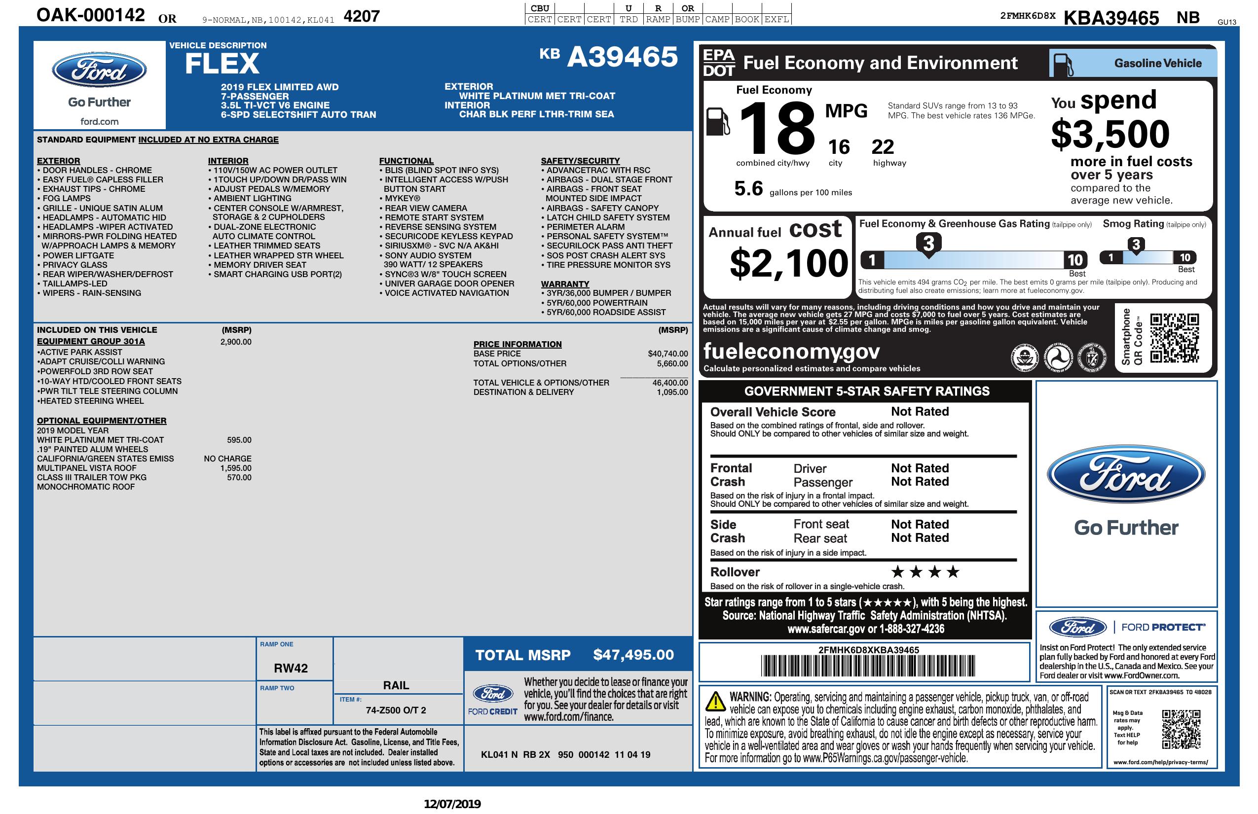 2019 Ford Flex Awd Limited 4dr Crossover