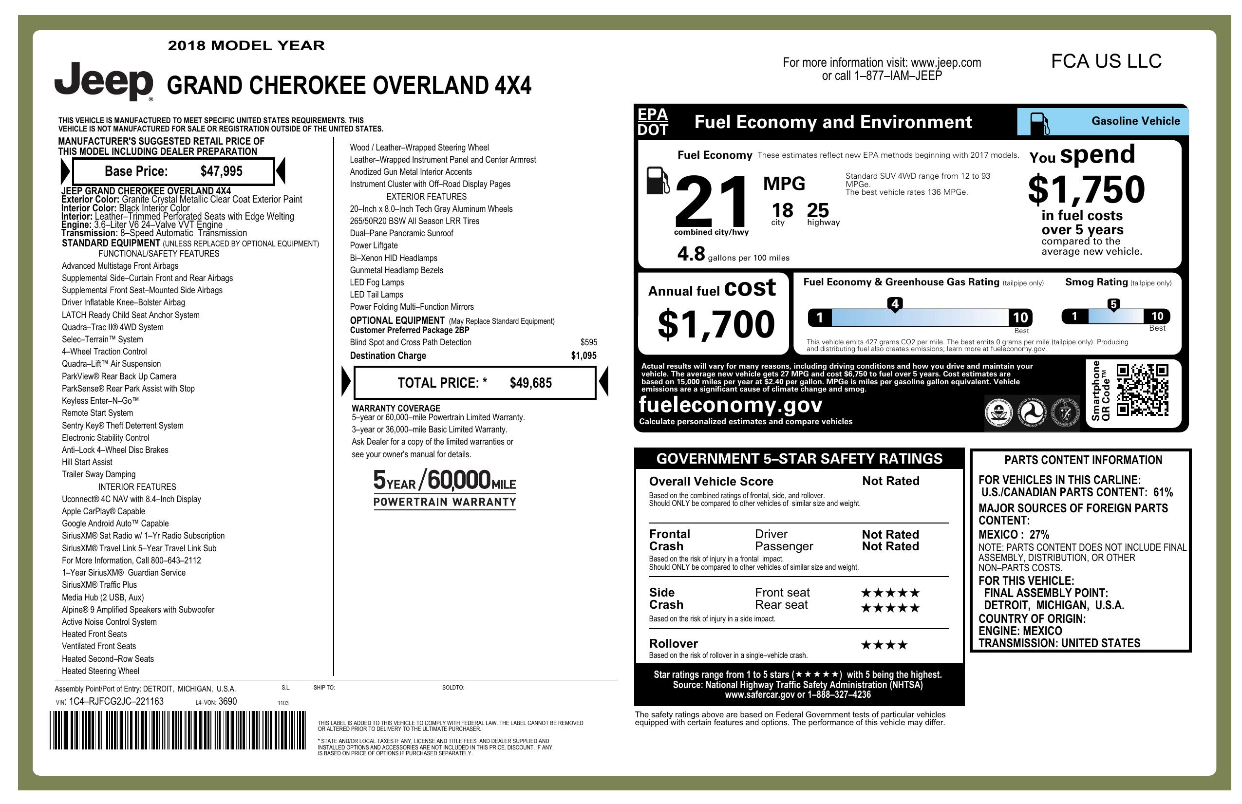 2018 Jeep Grand Cherokee Overland 4x4